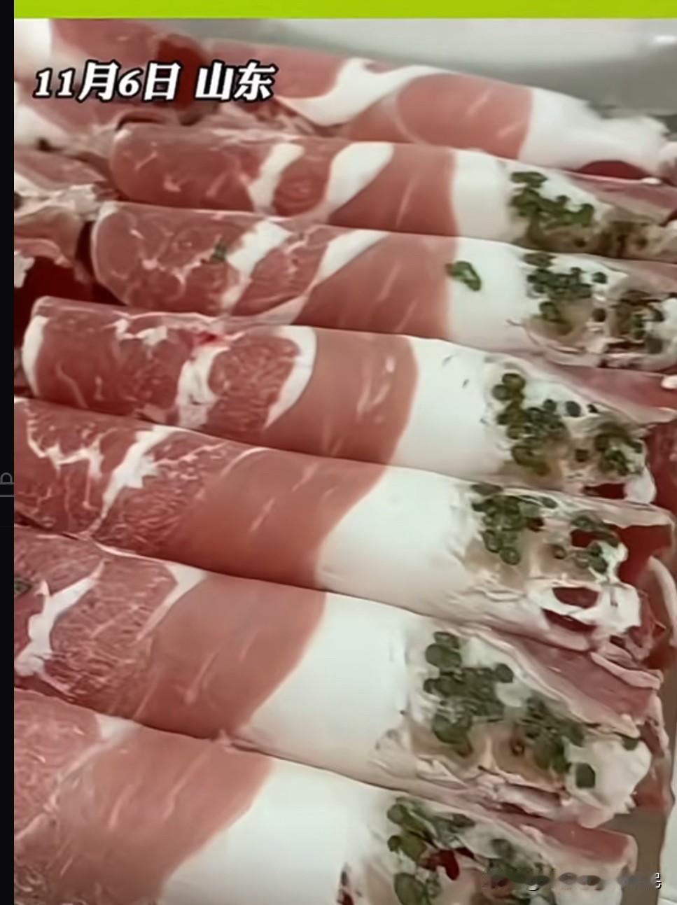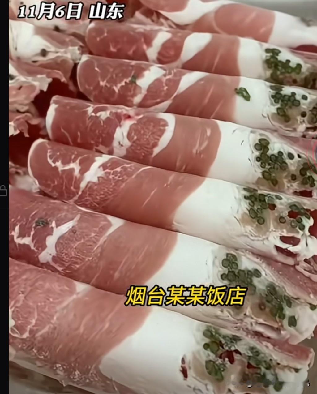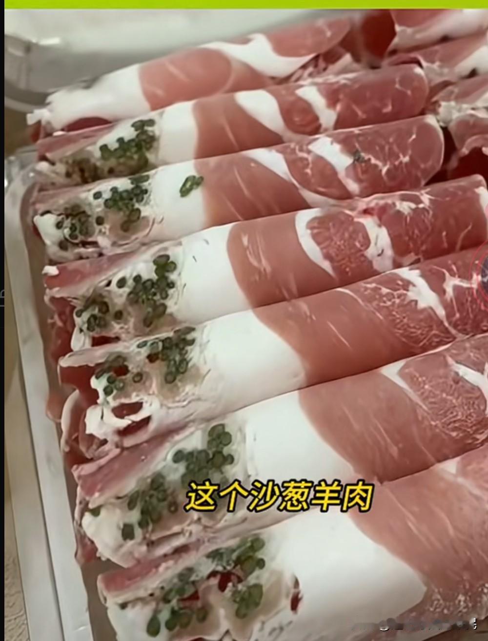 女子去火锅店吃火锅,看到点的羊肉卷里有点点绿色,不知道为什么,觉得很奇怪,于是就