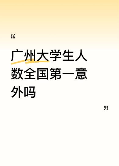 广州大学生数量全国第一,一点也不意外。因为广州是广东省的省会,经济比其他各省会的经济都要好,公立学校和私立学校都比较多,外来务工人员的子女也在此上学,广东省又是人口第一大省,而且广州的气候也比较好,省会在读的大学生人数最多很正常。