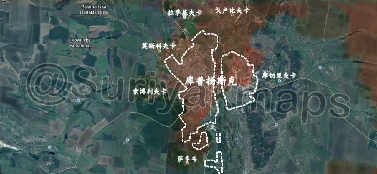 亲乌信源标注的俄军西部集群在库皮扬斯克市区的新进展,东西城区都占的差不多了。之前俄军突击队指挥官说下周完全占领库皮扬斯克,从最新的进展图可以看出俄军下周还真可能完全占领库皮扬斯克。#俄乌冲突#