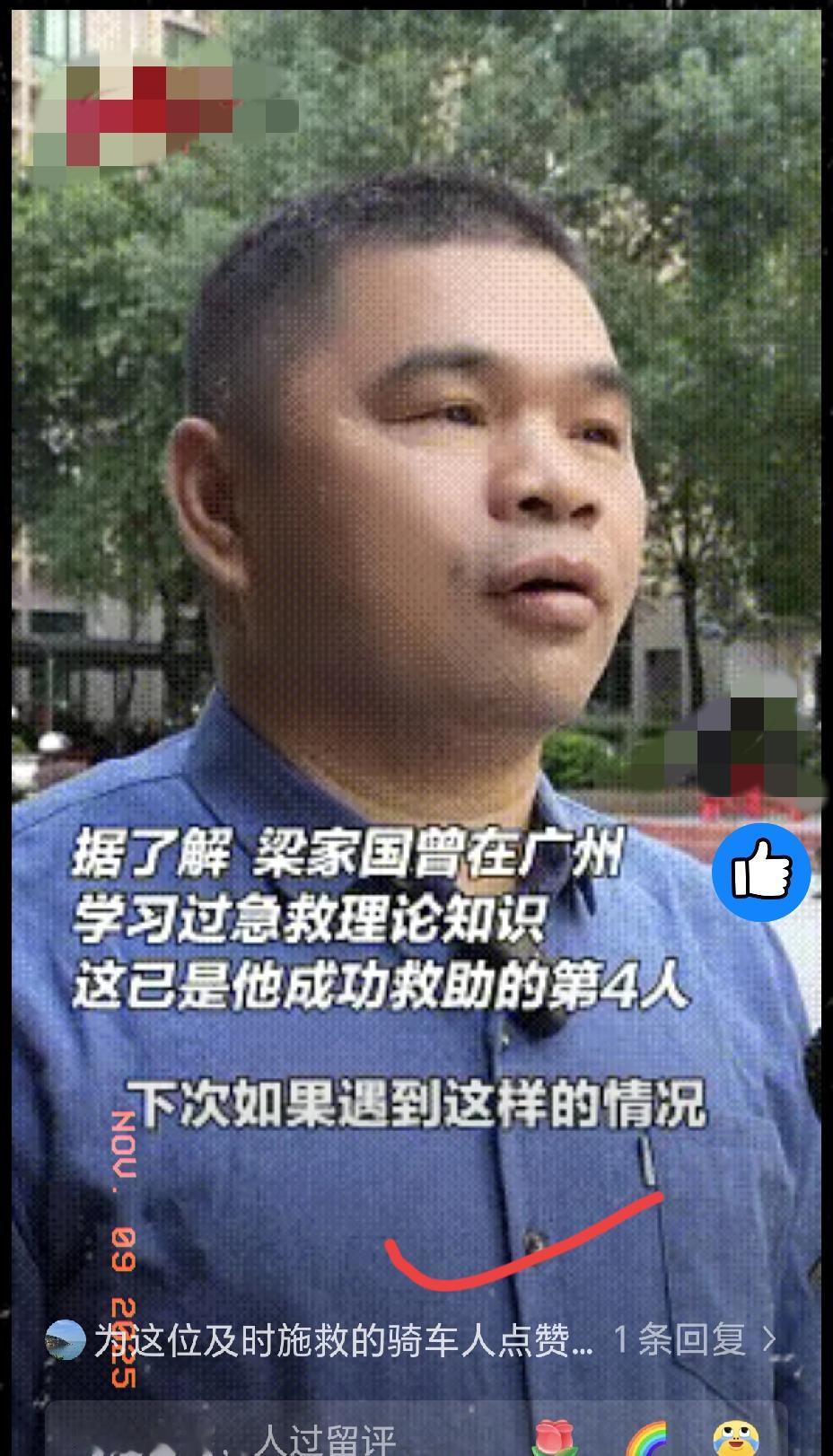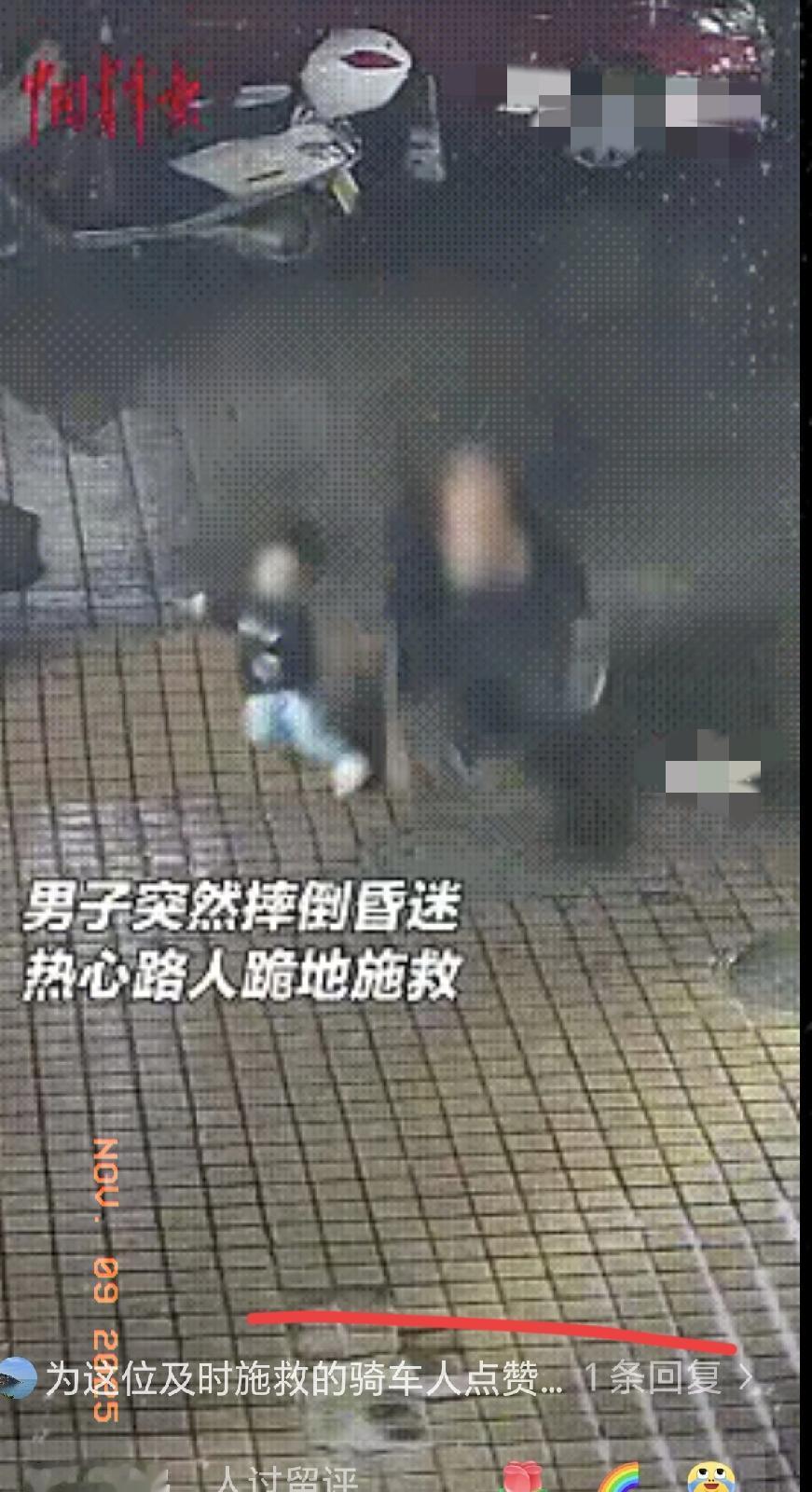 广东,一男子牵走孩子回家,可是在回家的路上男子突然摔倒昏迷,小孩抱着父亲的头哭喊,路人看到后都纷纷赶过来,可是没有一人敢伸手救助,就一个骑车的好心路人停下,然后跪地给男子做心肺复苏。 围观的人越来越多,有人帮忙打120、报了警,可没人敢上前搭把手,怕被讹的顾虑像层隔阂,把善意都困住了。但这位骑车大哥不一样,跪在地上一下下按压,五分钟里没停过,直到男子吐出一口气,才让紧张的空气松了些。 他说自己学过急救,这已经是救的第四个人,这份勇敢哪是不怕风险,分明是把别人的安危看得比顾虑重。其实世界从不是只有冷漠,只是太多讹诈新闻寒了人心,才让善意变得犹豫。 真正的善良从不是盲目冲动,而是懂保护自己,也敢伸出援手。如果是你遇到这种情况,会选择上前帮忙吗?来评论区说说你的想法~