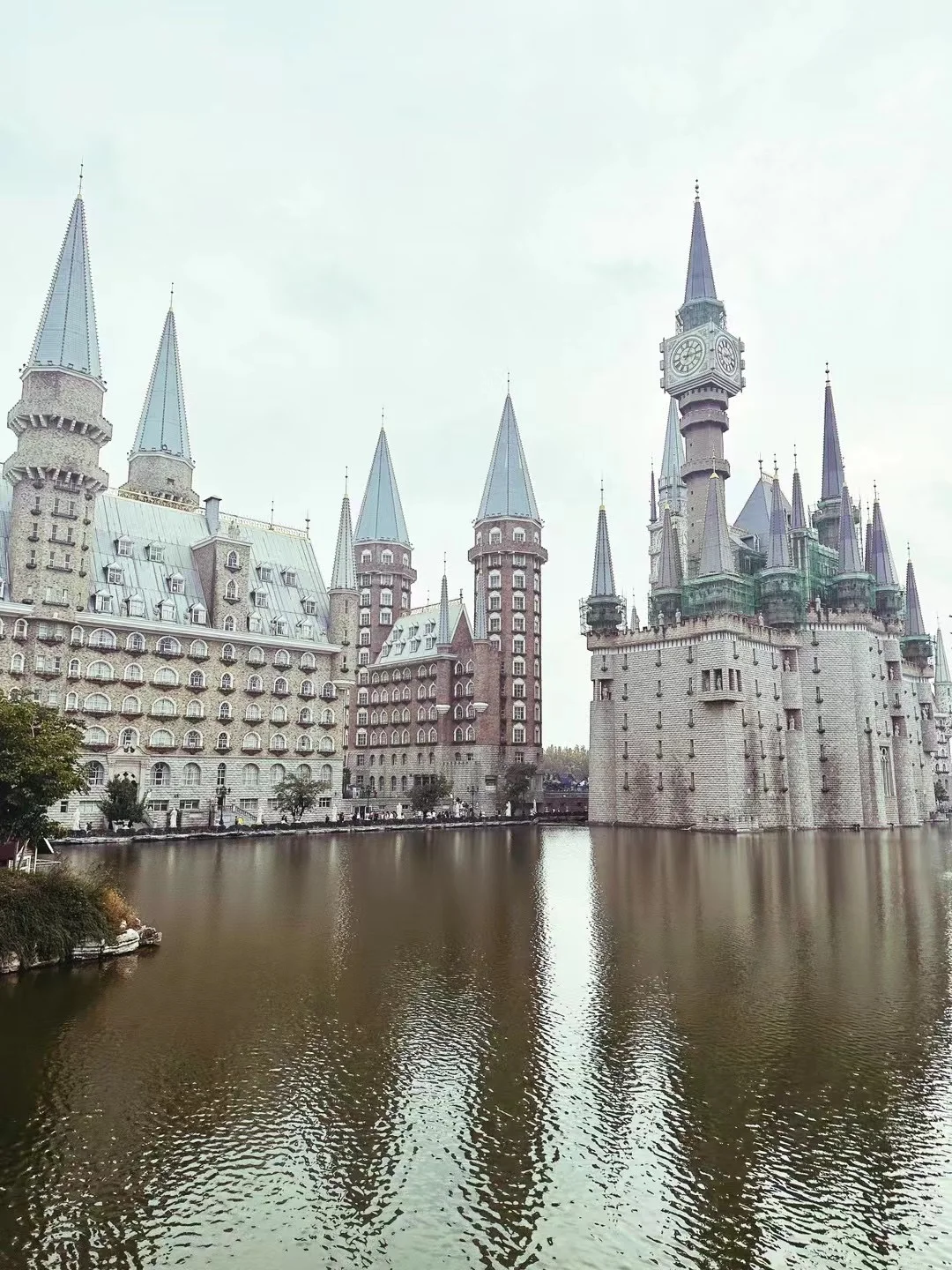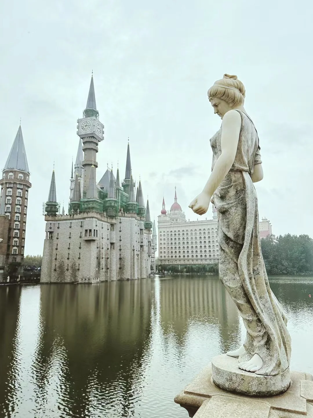 从鸡鸣城后面的廊亭看城堡的水中倒影位置不错