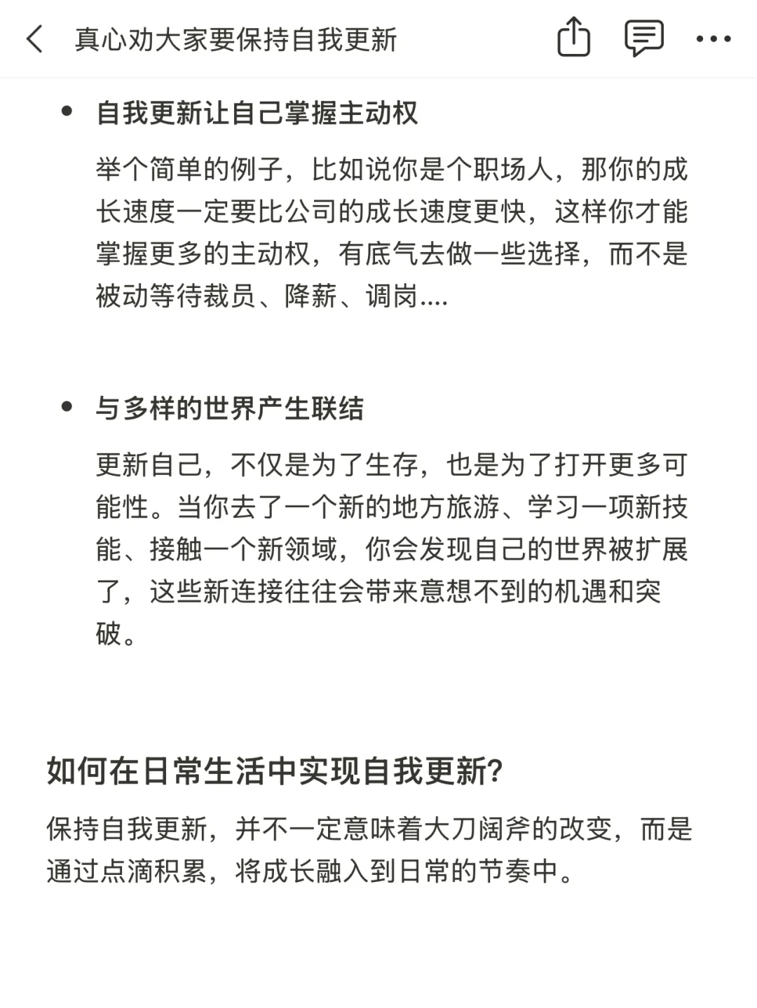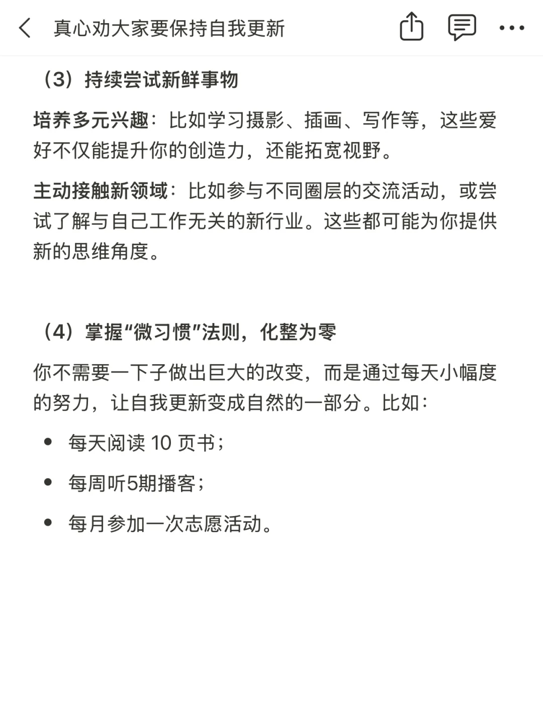 ☑️那么如何在日常生活中实现自我更新?给大家列了4个非常简单但又非常有效的方法,篇幅有限放图上了,希望对大家有用!
