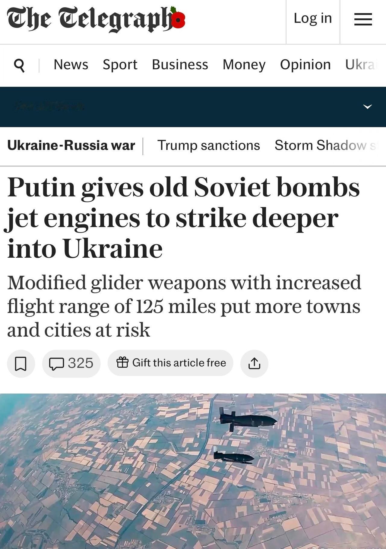 《每日電訊報》:普京為蘇聯時期的老式炸彈裝上XX產噴射發動機,使其能夠更深入打擊烏克蘭境內,飛行距離可達125英里。 根據《每日電訊報》報道,烏克蘭少將斯基比茨基表示,改良型炸彈配備了新的控制模組,使其能夠更好地抵抗烏克蘭使用的電子戰幹擾器。 俄羅斯為蘇聯時代的KAB滑翔炸彈配備了XX製造的Swiwin SW800Pro-Y渦輪噴氣發動機,使其射程從50英里增加到125英里——這種發動機在XXXX上的售價為18000美元。 9月在波爾塔瓦地區發現了第一處已知的飛機殘骸,一枚噴射炸彈飛行了85英里後擊中了洛佐瓦鐵路樞紐。 射程的擴大使波爾塔瓦州、第聶伯羅彼得羅夫斯克州、哈爾科夫州、扎波羅熱州、尼古拉耶夫州和敖德薩州的大部分地區受到威脅——這些城市以前被認為很安全,現在卻面臨風險。 烏克蘭面臨兩難:用昂貴的西方攔截飛彈,例如愛國者Pac-3(每枚飛彈近100萬美元),去攔截廉價生產的武器,在經濟上並不划算。 自2023年莫斯科因巡航飛彈短缺而開始改進以來,俄羅斯已向烏克蘭投擲了約4萬枚滑翔炸彈。 改裝後的炸彈使俄羅斯戰機能夠從烏克蘭西方中程飛彈系統(如Nasams飛彈或Iris-T飛彈)射程之外發射。 烏克蘭情報部門稱,俄羅斯遠未達到大規模生產噴氣式炸彈的程度:「它們的使用僅限於測試,偶爾會對不同地區進行打擊以評估其有效性。」
