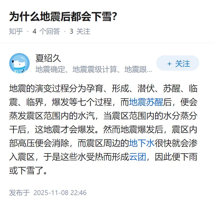 为什么地震后都会下雪?