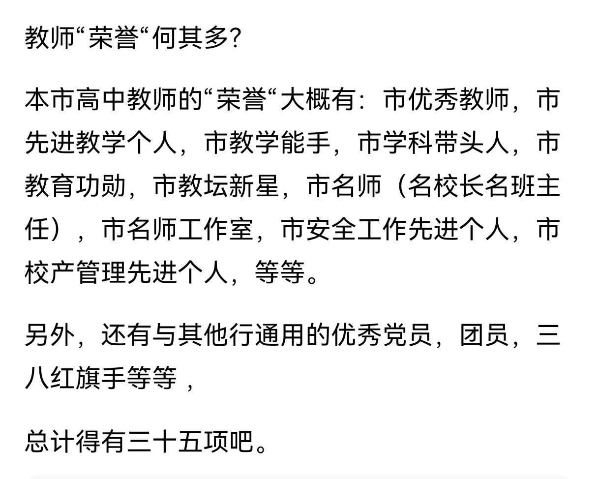 荣誉是越来越多,但几个荣誉能颁到基层老师身上?荣誉也讲究依附权贵,看权贵就发,见老百姓就躲。