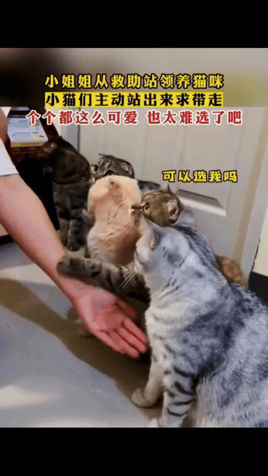 这只小狸花也太会“主动出击”了吧!伸爪子、往前挪步,把“想要被选”写在行动上,硬生生为自己抢来幸福~ 主动争取的样子真的好戳人,不管是小动物还是人,勇敢表达想要的,才更容易被命运看见呀!要