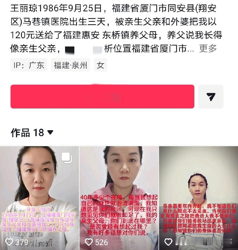 出生三天就被抱养的王丽琼是80后,她长得很漂亮,父亲和外婆收下120元,将其送给养父母。可40年来,她被打得遍体鳞伤,没过过一天好日子! 王丽琼是1986年9月25日,出生于福建厦门同安县马港镇医院。2003年,马港和其他几个镇被析出,设立为厦门市翔安区,一直持续到今天。 据她自己描述,当年她刚出生三天,就被亲生父亲和外婆给送人了。养父母家是福建惠安东桥镇的,给了120元,从此亲情血脉,天各一方。 与其他幸运儿不同的是,养父母对她很不好,经常责打虐待,头部、大腿、胳膊等处伤痕累累、疤痕犹在。导致她现在心里都有阴影,不想回家更不敢回家。 领养孩子原本就是因为家中缺少,可养父母一家求来明珠后又不珍惜,有不少网友猜测是因为他们后来有了亲生孩子。 不惑之年却像浮萍飘草,王丽琼想找到亲生父母的心愈发浓烈,正如她自己所言: “寻亲需要双向奔赴,她不怪亲生父母当年将她送人,理解当时的难言之隐,只想想知道亲人的模样怎样?近况如何?见上一面也就知足了!” 正所谓血浓于水,在当时那个年代,的确有很多婴儿被送养的事实,尤其是女婴或残疾婴儿。她们有的能够遇到好家庭,有的则过得十分不如意,找到亲生父母,是这一小部分人一生的执念。 但话又说回来,无论是亲生父母还是养父母,如此做法,或都已涉嫌违反法律和道德的底线。 《民法典》第1044条,禁止借收养名义买卖未成年人。 《刑法》第240条,以出卖为目的,收买、贩卖儿童的,处五年以上十年以下有期徒刑,并处罚金。 这里的核心就是需要判断是否“以出卖为目的”,不同时期、不同地域、包括城乡之间,用来衡量的金额有所不同。八十年代的120元和现在不可同日而语,当然法律也在不断更新和完善,需要根据实际情况仔细斟酌。 如果是收养人自愿给出的合理补偿,比如补贴送养人因生育产生的必要医疗费、生产费等,那很显然,这并不是犯罪。 《刑法》第260条,虐待家庭成员,情节恶劣的,处二年以下有期徒刑、拘役或者管制。 这里的方式主要有:打骂、禁闭、捆绑、冻饿、有病不治、强迫过度劳动等,是对肉体和精神上的摧残。 王丽琼身上有多处伤疤,从言语表达中能明显看出,她在养父母家中受到精神和肉体的双重摧残。因此,养父母的所作所为,或涉嫌虐待罪。 每个人的人生都是独一无二的,有人幸福,有人苦难。与父母亲人在世的血脉牵连,不仅是来时路,更是明日的归途! 希望王丽琼能够早日找到亲生父母,也希望每个不幸的人,都能早日与自己和命运和解…… 【关注@小讼言案 ,为您分享更多精彩】 (来源:都市报道)