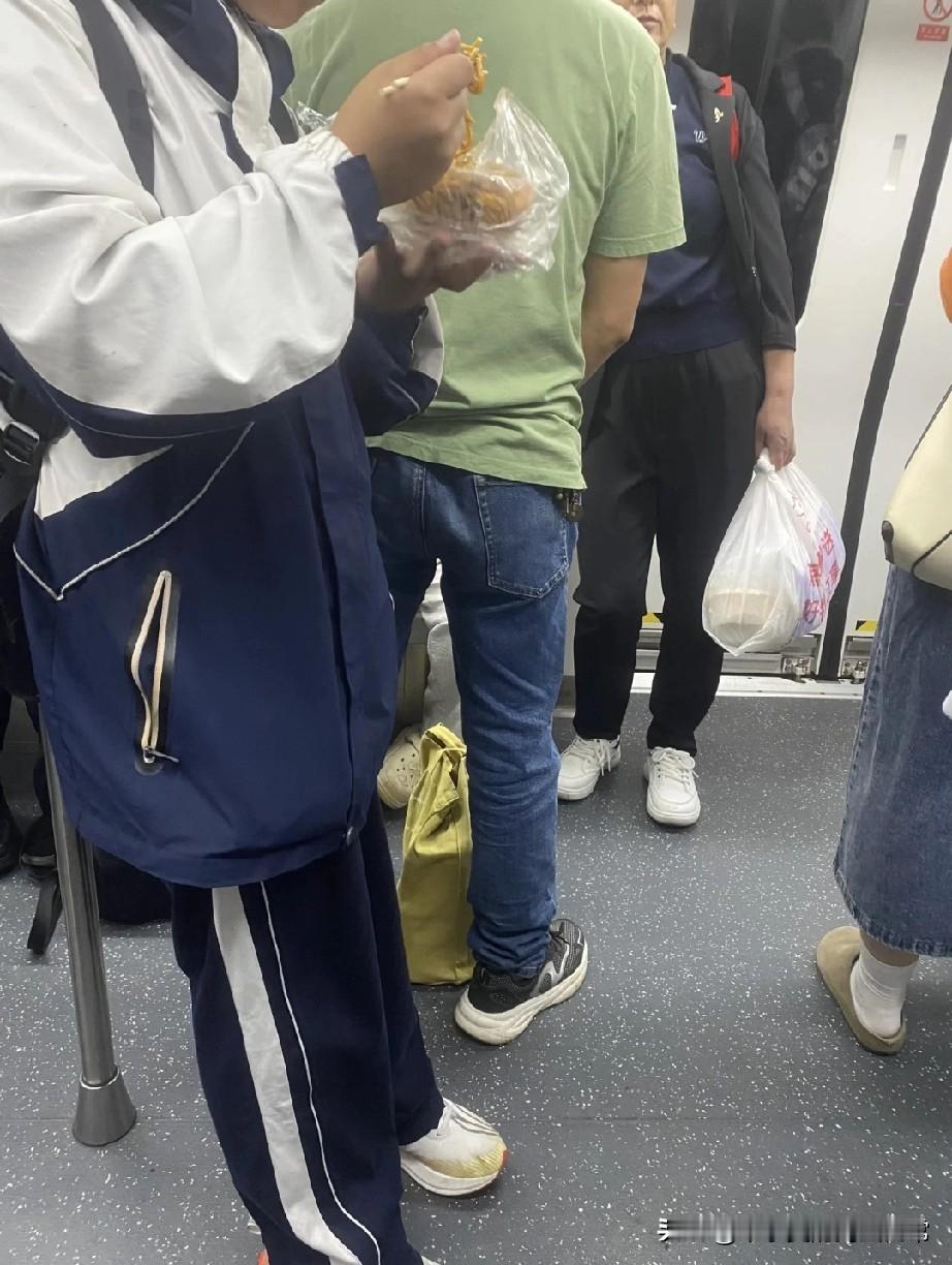 谁能管管地铁吃东西的! 今早挤14号线,刚进车厢就被一股“混合味”创得脑瓜子嗡嗡的——左边学生党啃着酱香饼,油星子往我袖子上蹦;右边大叔嗦着螺蛳粉,酸笋味儿顺着口罩缝往鼻子里钻,连扶杆都沾着点辣条渣! 不是说地铁禁吃吗?咋现在成了“干饭专列”?学生娃可能没概念,但成年人也揣着包子油条往车厢里钻,是真看不见“禁止饮食”的标识,还是觉得“我饿我有理”? 有人说“管不了”,可香港地铁吃东西直接罚2000,咱这儿咋连个劝阻的工作人员都见不着?真等哪天汤洒在别人手机上、油蹭到西装上,这账算谁的? ——到底是规则太松,还是“没素质”成本太低?你们遇过更离谱的地铁干饭现场吗?
