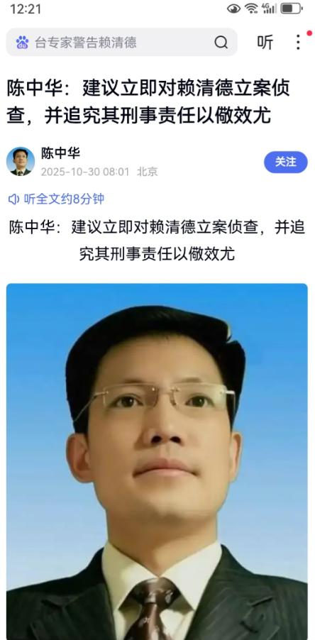 继沈伯洋之后,北京中公法律咨询中心主任陈中华建议立即对赖清德立案侦查!并追究其刑事责任以儆效尤! 2025年11月,一则消息在舆论场掀起波澜——北京中公法律咨询中心主任陈中华公开建议,立即对赖清德启动刑事侦查程序并追究其刑事责任。这一提议绝非空穴来风,而是基于赖清德长期顽固的“台独”行径,以及大陆日益完善的法律体系与司法能力。 赖清德的“台独”嘴脸早已昭然若揭。早在2017年9月,他刚就任台行政机构负责人,就在台立法机构公然宣称自己是“主张‘台湾独立’的政治工作者”,自诩“务实的‘台独主义者’”。 此后,他多次在公开场合强调“确实是‘台独工作者’”,即便在选举期间试图淡化立场,过往言论也成了无法抹去的“台独”自白。 上台后,赖清德变本加厉,将“台独”言论转化为实质分裂行径。在所谓“双十”讲话及就职讲话中,他公然歪曲《开罗宣言》、联大第2758号决议等具有国际法效力的文件,宣扬“两岸互不隶属”的“两国论”,虚构“台湾主权”。 不仅如此,他还大肆煽动“反中抗中”情绪,与“心战大队”等谋“独”势力呼应,散播分裂思想,把台湾民众绑上“台独”战车。 在行动上,赖清德推进“以武谋独”的步伐从未停歇。他将防务预算提升至GDP的3%以上,甚至计划2030年前达到5%,妄图以武力对抗统一。同时,他频繁勾连外部势力,甘当反华棋子,企图借助外力分裂国家。 2025年,他抛出所谓“17项策略”,严查岛内民众申领大陆户籍,一旦查证台湾民众持有大陆身份证,就注销其台湾身份,并取消健保、身份证与“护照”等。这一系列举措,严重破坏台湾家庭正常生活,制造社会不安,其“台独”本质暴露无遗。 面对赖清德的种种恶行,大陆的法律武器早已准备就绪。2024年,最高人民法院新修订的司法解释明确,对分裂国家罪的管辖权延伸至“在台湾地区担任公职的人员”,且不受地域限制。 陈中华团队运用区块链存证技术,将赖清德在社交媒体、公开演讲中的“台独”言论进行时间戳认证。这种电子证据在2023年厦门法院审理类似案件时已被采信,开创了涉台案件数字取证先例。 2024年《跨境电子证据认定规则》实施后,两岸虽未建立司法协助渠道,但通过第三方公证机构已可实现证据互认。 大陆的司法实践也展现出强大能力。2024年以来,大陆法院受理的涉台案件中,适用《反分裂国家法》的比例从5%升至18%。 东部战区军事法院2025年8月披露,已组建专门合议庭审理危害国家安全案件,配备具备台湾地区法律知识的审判员。这种专业化的司法准备,让法律手段不再是象征性表态。 在国际层面,大陆同样占据法理高地。联合国国际法委员会2024年报告明确承认“一国政府有权对分裂势力行使域外管辖权”,该报告援引2010年国际法院科索沃案咨询意见,强调“维护领土完整优于自决权”。 荷兰海牙地方法院2023年审理分裂主义案件时,采纳“普遍管辖权”原则,认定危害领土完整罪可跨国追诉。这些司法先例,为追究“台独”分子刑事责任开辟了路径。 经济层面,大陆也亮出利剑。2024年修订的《不可靠实体清单规定》,将“支持分裂势力”列为制裁事由。这意味着任何为赖清德提供资金支持的企业,都可能面临大陆市场准入限制。 2025年7月,美国务院法律顾问办公室出具意见,认为“不支持台独”包括不提供法律庇护,中美2024年续签的《刑事司法协助协定》虽不直接适用于台湾,但美方承诺不成为“逃犯避风港”。这让赖清德等人失去所谓“保护伞”。 从沈伯洋到赖清德,大陆法律追责呈现递进态势。这种“抓典型”策略,既避免扩大化打击,又形成足够威慑。如今,大陆检察机关正在建立“台独”分子犯罪档案库,实现行政违法与刑事犯罪的双重记录。 当陈中华提出立案建议时,背后是不断完善的法律体系和日益强大的司法能力。 大陆用法律武器维护统一,彰显大国风范。这不是情绪宣泄,而是理性选择;不是对抗升级,而是规则竞争。当“台独”分子在全世界面临法律风险时,分裂主义的生存空间将越来越小。历史将证明,真正的强大不是靠武力威慑,而是靠制度自信。 对于陈中华的这一建议,你怎么看?欢迎在评论区留言讨论。