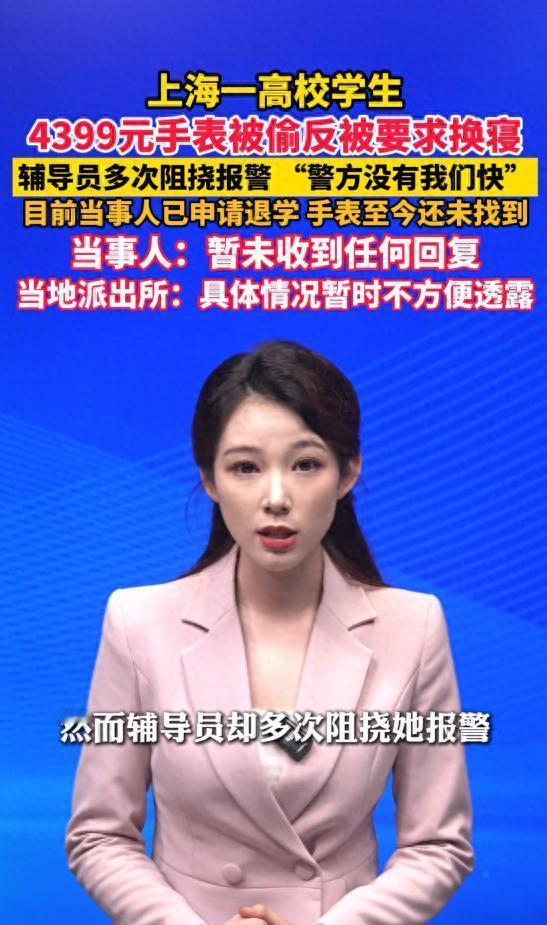 11月8日,上海,某大学女生价值4399元的苹果手表在宿舍不翼而飞,通过手机定位查询,手机最后出现的位置指向室友的床铺。可没想到女生报警时被辅导员多次阻拦,称“警方没有我们快”,最新消息,该女生已申请退学。 东西丢了报警不是最基本的一件事吗?为什么却遭到了辅导员的多番阻拦? 林溪(化名)是个性格挺内向的姑娘,刚上大学才四天就发现自己价值4399元的苹果手表就不见了。她心里一慌,赶紧拿出手机打开 “查找” 功能,定位上的小图标清晰地显示,设备就在寝室里,而且距离她越来越近,最后停在了向某(化名)的床铺区域。 林溪心里咯噔一下,她和向某平时交集不算多,向某话不多,平时总喜欢待在自己的位置上。但林溪觉得还是应该先问问,于是她走到向某面前,小声地问:“那个…… 你有看到我的苹果手表吗?” 向某头也没抬,冷冷地回了句:“没看到。” 林溪心里更没底了,她又仔细找了寝室的每个角落,甚至连垃圾桶都翻了,可就是没有手表的影子。无奈之下,她决定报警。可她刚拿出手机准备拨号,辅导员王老师(化名)就匆匆赶到了寝室。 “小林啊,这点小事报什么警,警方处理起来慢得很,有这时间还不如我来帮你找,我们肯定比警方快!” 王老师语气急促,还伸手想把她的手机拿过去。林溪不明白为什么辅导员要拦着她报警。 之后王老师就把向某叫到了走廊。林溪远远地看着,能看到王老师表情挺严肃,可向某还是一副无所谓的样子,摇头说没拿。 本以为辅导员介入能解决问题,可接下来的发展却让林溪始料未及。王老师不仅没帮她追查手表,反而开始劝她 “算了”,还说 “都是同学,闹僵了不好”。 林溪不服气,再次提出要报警,这次王老师更过分了,直接以 “影响寝室和谐”“给学校抹黑” 为由,要求林溪要么别报警,要么就从寝室搬出去。 林溪觉得又委屈又荒谬,她是受害者,怎么反而要她搬出去?可辅导员态度强硬,甚至还切断了寝室的电源,以此逼迫其他室友一起给林溪施压,让她搬离寝室。室友们也很无奈,一边是同学情谊,一边是辅导员的要求,左右为难。 期间,林溪还听到其他同学私下议论,说向某以前在高中时就有过类似的行为,偷拿同学的手机,最后也是因为死不承认,老师又息事宁人,不了了之。这让林溪更加确定,自己的手表十有八九就是向某拿的。 但是事情拖了好几天学校那边也没人给她一个说法。她觉得在这个学校待不下去了,这里没有公道,只有息事宁人的 “和稀泥”。于是,她拖着行李箱,去了学校教务处,递交了退学申请。至今她都没收到学校或者辅导员的任何回复,那块手表也依旧下落不明。 这件事在网上传开后,网友们炸开了锅。 有网友说:“这什么学校啊,受害者还要被赶走,辅导员是怕事还是收了好处?” 还有网友感慨:“这姑娘太惨了,明明自己没错,最后却要退学,这学校的处理方式也太让人寒心了。” 也有网友从这件事里悟出道理:“遇到不公,一定要坚持维权,不能因为别人的阻拦就放弃,不然只会让恶人得逞。同时,学校和老师也应该公正处理问题,保护学生的合法权益,而不是一味地掩盖问题。” 林溪的遭遇就像一面镜子,照出了某些校园管理中存在的问题。当学生的合法权益受到侵害时,学校本应是他们最坚实的后盾,可在这件事里,这份后盾却变成了伤人的利器。希望这样的事情不要再发生,也希望每个学生在遇到不公时,都能真正被公平对待。 对于这件事情,您怎么看?