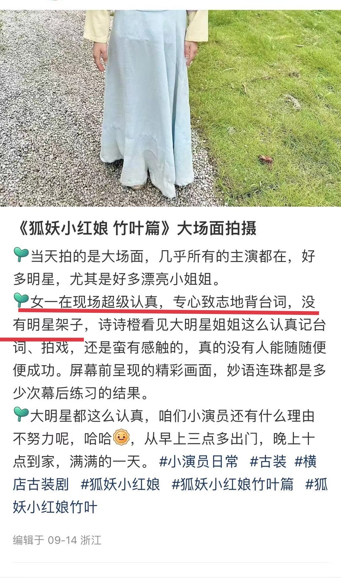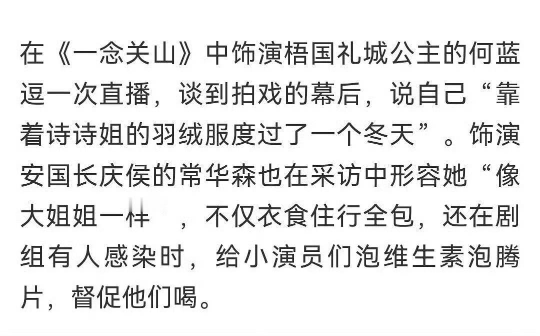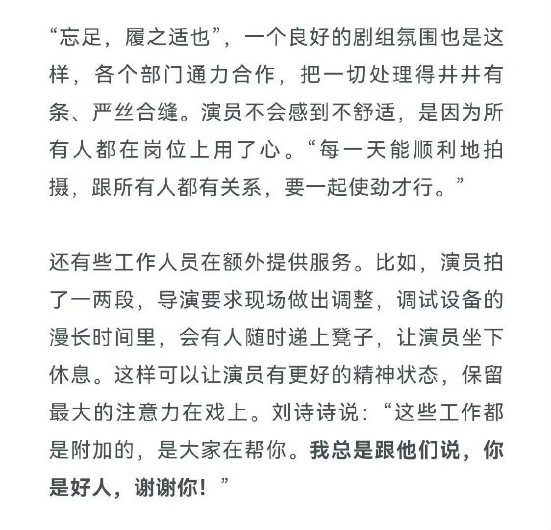 借用其他姐粉的话来说,就是她能做到平等对待所有人所有事,不媚所谓强者,也不看轻任何新人或者工作人员包括群演,真正的保持初心,方得始终。而且她特别愿意给新人机会照顾新人,会为角色做提前准备,对每个人都充满善意。