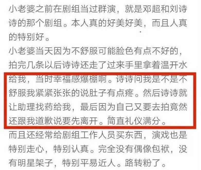 我也希望姐粉不要用姐去给任何合作对象赋魅,是刘诗诗有能力有眼光有爱心才让别人愿意簇拥她,夸任何东西的时候最终着落点还是应该回归到刘诗诗本人身上。