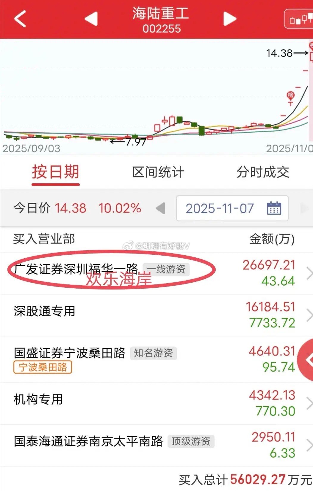 盘后龙虎榜显示,欢乐海岸爆买2.6亿,宁波桑田路助攻4600万。