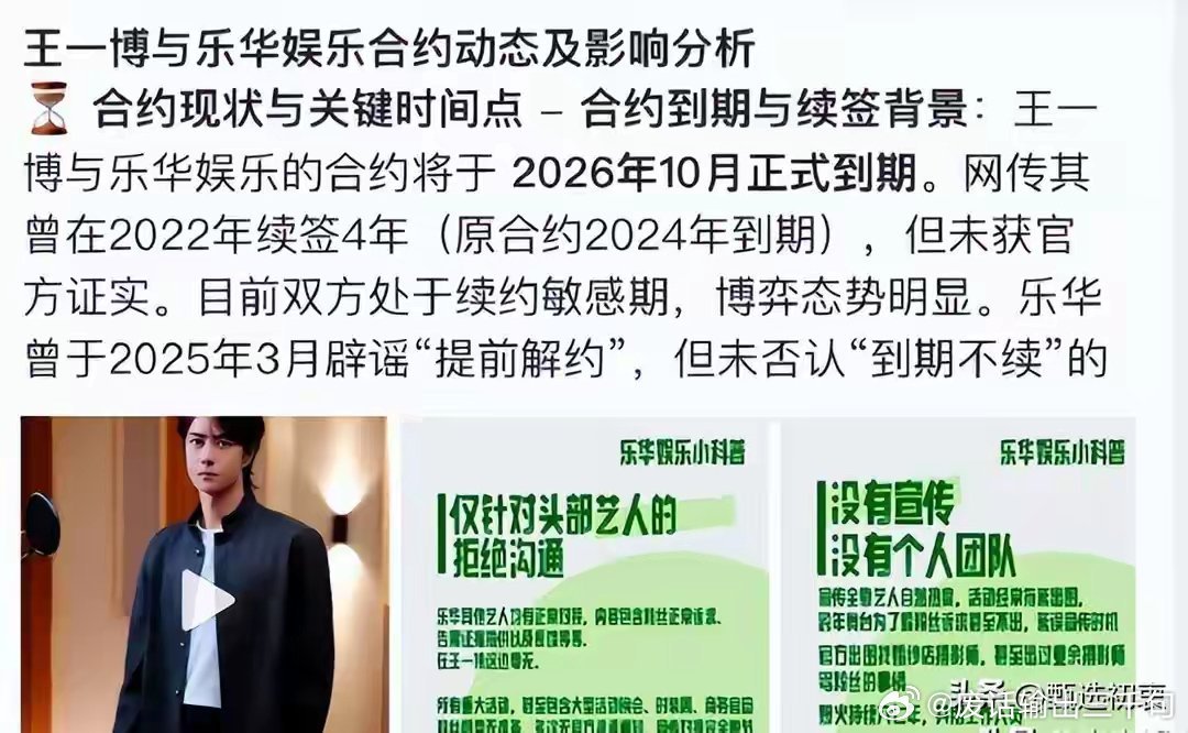 这两天,一则“王一博不再续约乐华”的消息爆出后瞬间走红,众做周知王一博可以说是乐华的头号“摇钱树”。