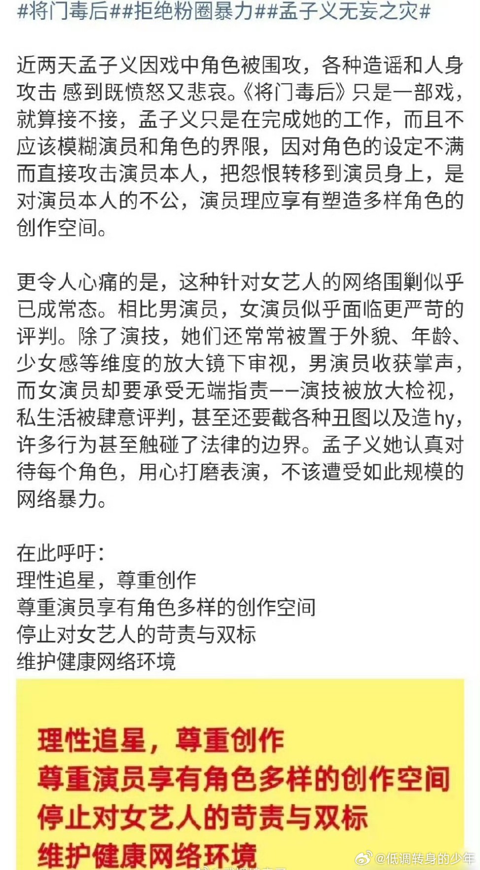 孟子义粉丝发文维权: