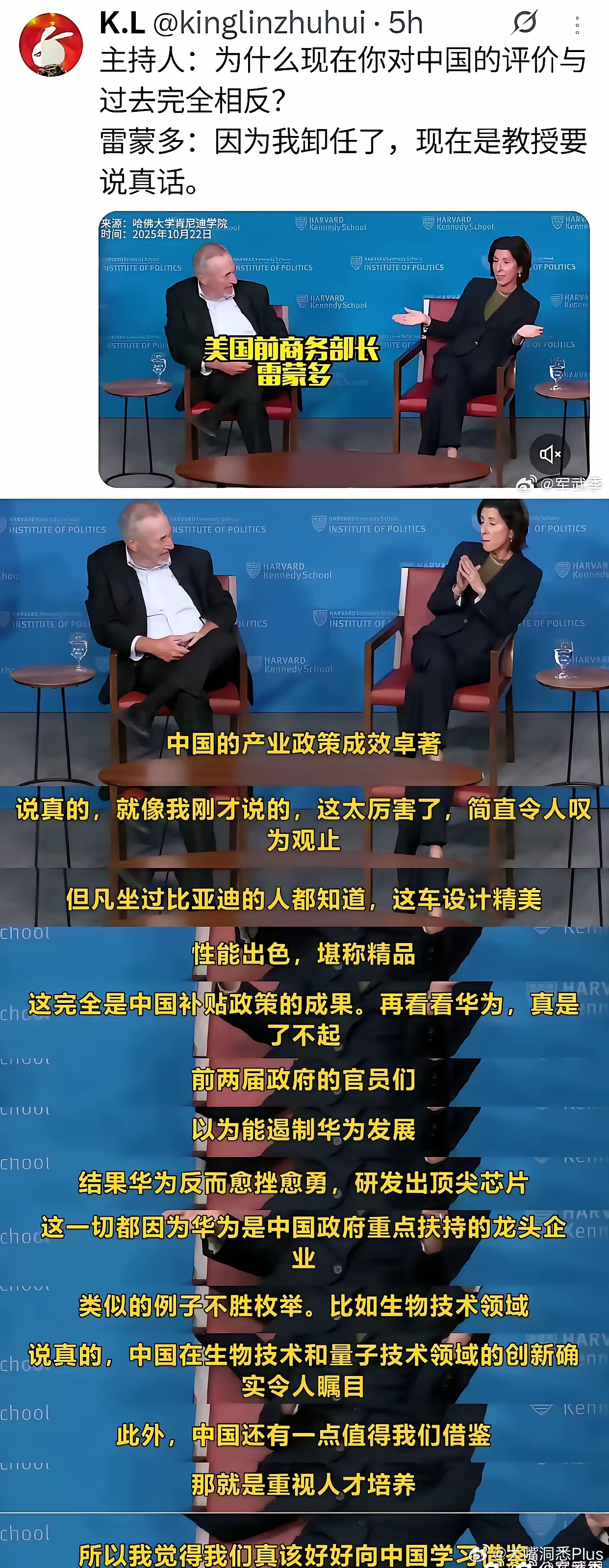 雷蒙多卸任后嘴巴涂了蜜一样一个劲的夸中国
