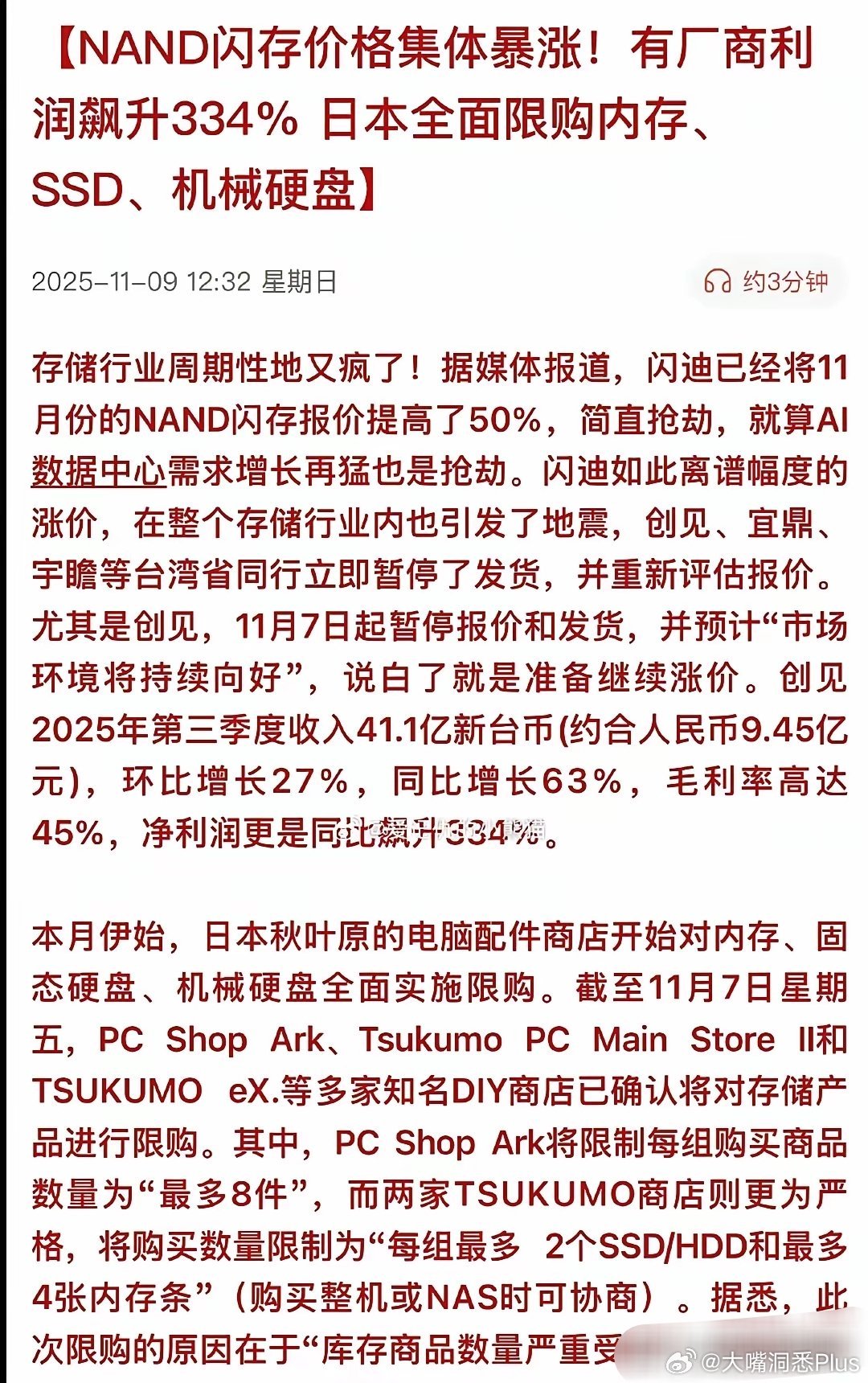 全球第二大闪存颗粒市场占有率的闪迪也宣布涨价50%
