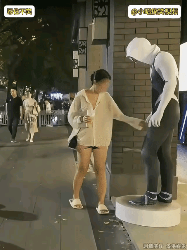 笑不活了! 美女误把真人当模特, 伸手就摸的瞬间,直接吓得弹射后退! 这画面想想都替她社死!估计姑娘逛街时被橱窗里的“模特”颜值戳中, 忍不住想上手感受下面料质感,结果手刚碰到对方,“模特”突然动了动,还转头看了她一眼。 那瞬间,美女的表情从好奇变成惊恐,撒腿就跑,估计脚趾都能抠出三室一厅。 其实这事儿特真实,现在很多品牌会用“真人模特”搞沉浸式体验,但没提前提示真的超容易闹乌龙。 这不仅是搞笑,更提醒商家:新奇营销也要兼顾顾客的体验感, 不然再有趣的创意,也可能变成“惊吓”。 你们有没有过类似的社死瞬间?如果是你遇到这种情况,第一反应会是啥?模特瞬间