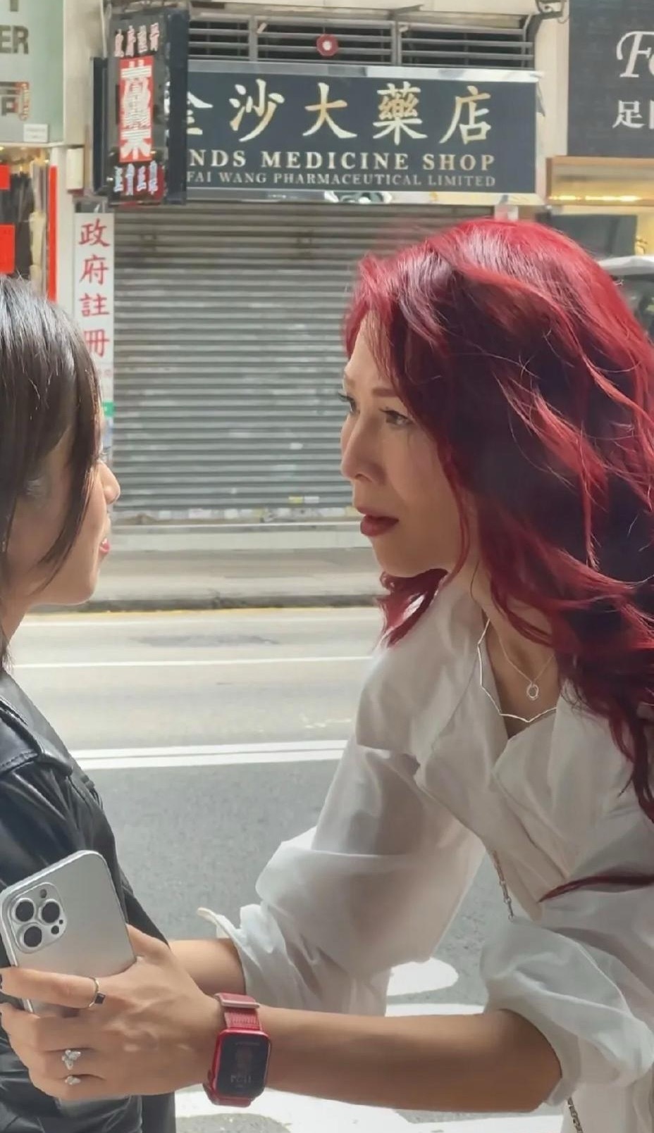 香港街头偶遇蔡少芬拍戏,本人太瘦了人也不年轻。今年52岁的蔡少芬染着一头红色长发,身材高挑但身上没有什么肉,手上都是青筋暴起,目测体重90多斤。她身穿白色衬衫认真拍夺女的感情戏。说实话,蔡少芬演技是挺好的,不知是审美问题还是导演要求染成红色头发,看上去老气横秋的,并不适合她,你们觉得呢?