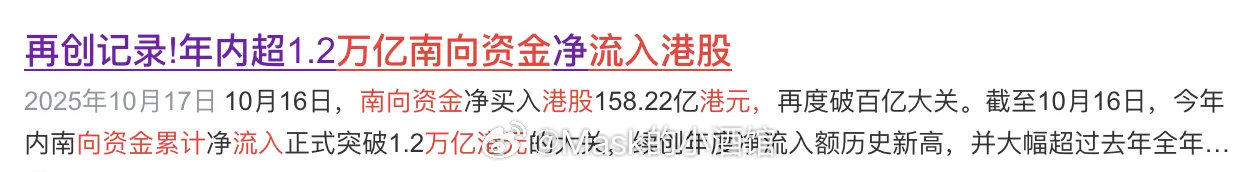 2025年到11月初,南向资金累计流入港股已经超过1.26万亿港元,不仅远超去年全年的8000亿,更创下了港股通开通以来的历史新高。