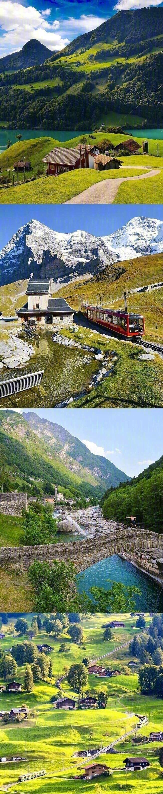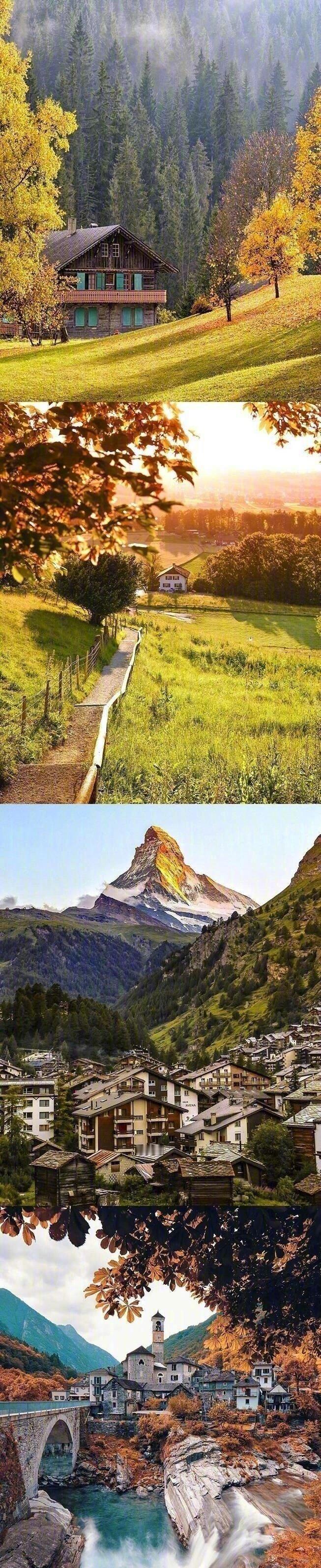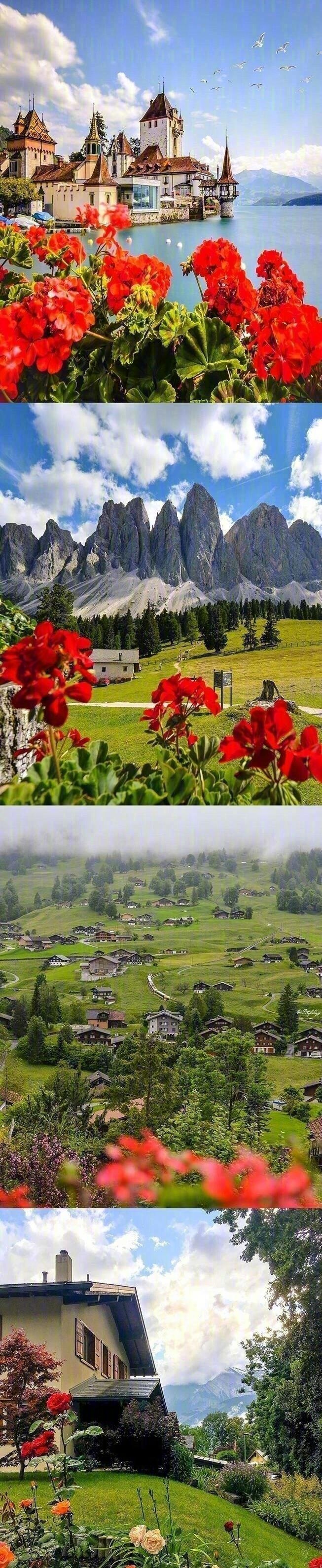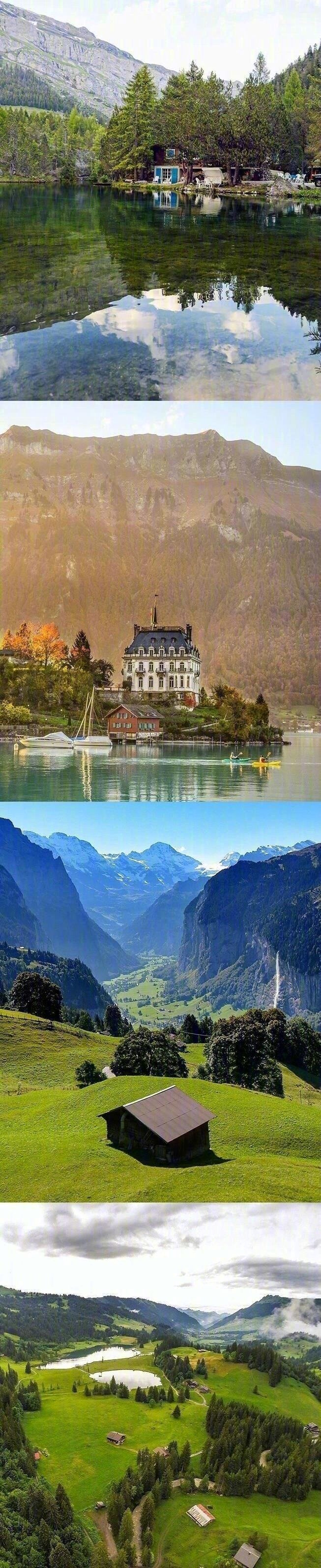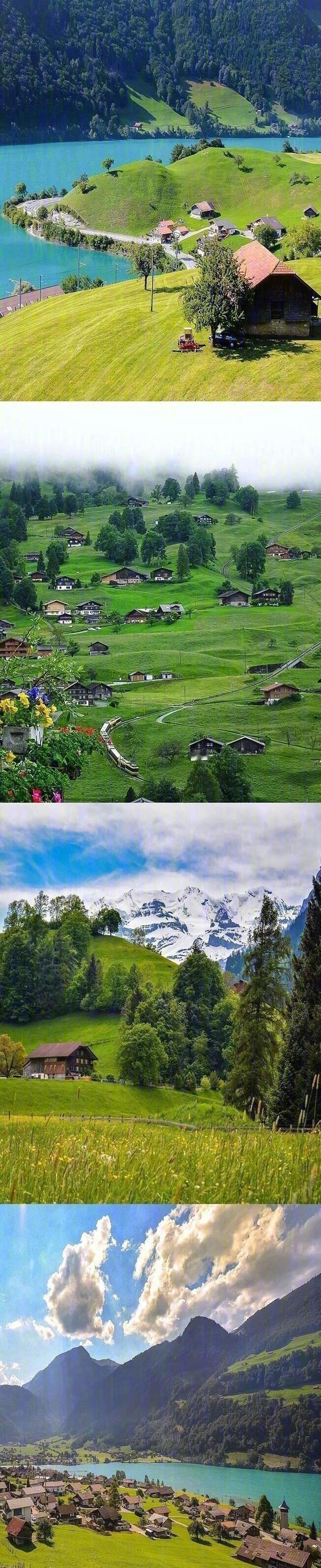 蓝天白云,青山绿水,风景如画般的瑞士~ 自然风光