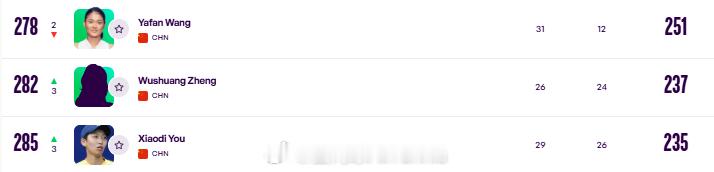 最新一期中国大陆球员WTA单打世界排名TOP300[围观]24.郑钦文57.王欣