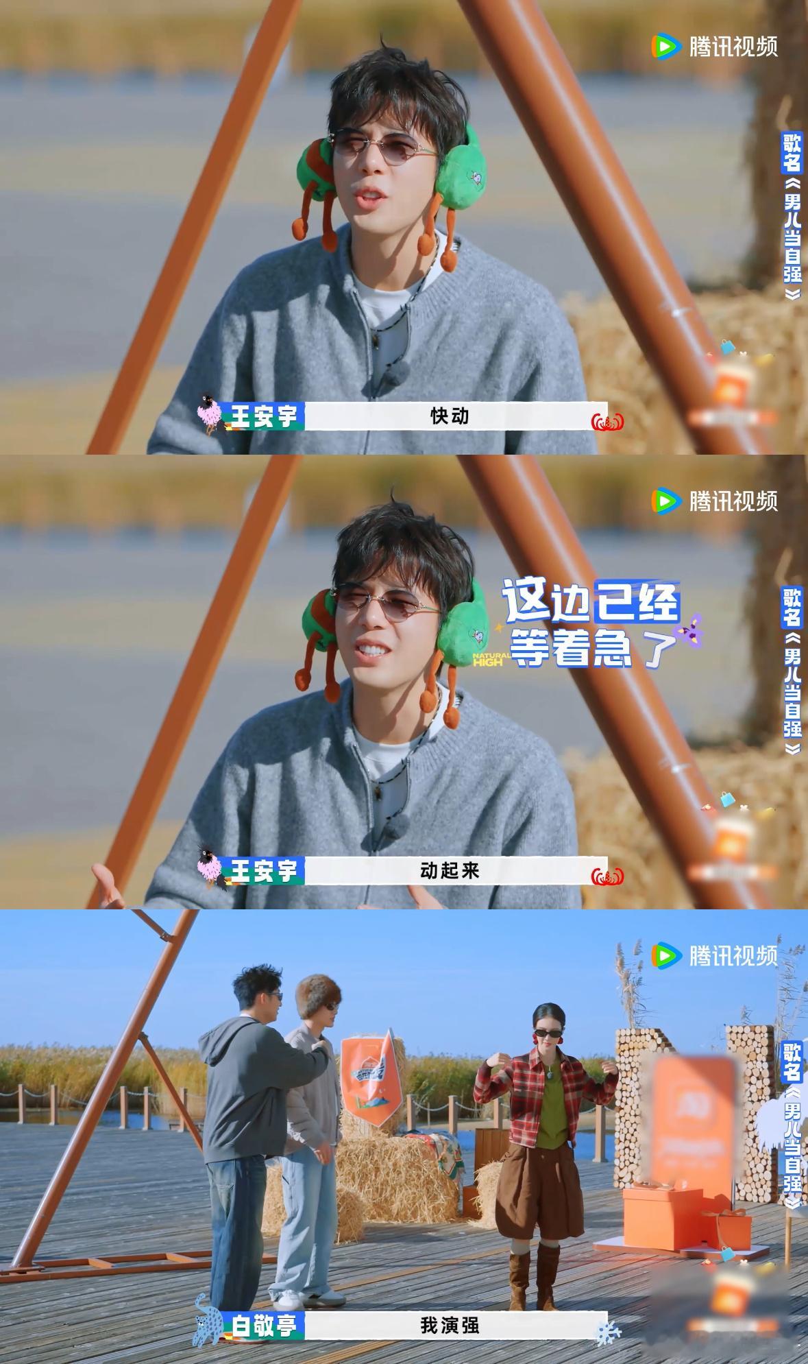 黄景瑜指白敬亭王安宇喊帅哥 黄景瑜指着白敬亭让王安宇猜“男儿”,结果王安宇喊出了帅哥,真的是大笑不止!这个互动简直是娱乐圈的开心源泉,太有意思了!现在就出发