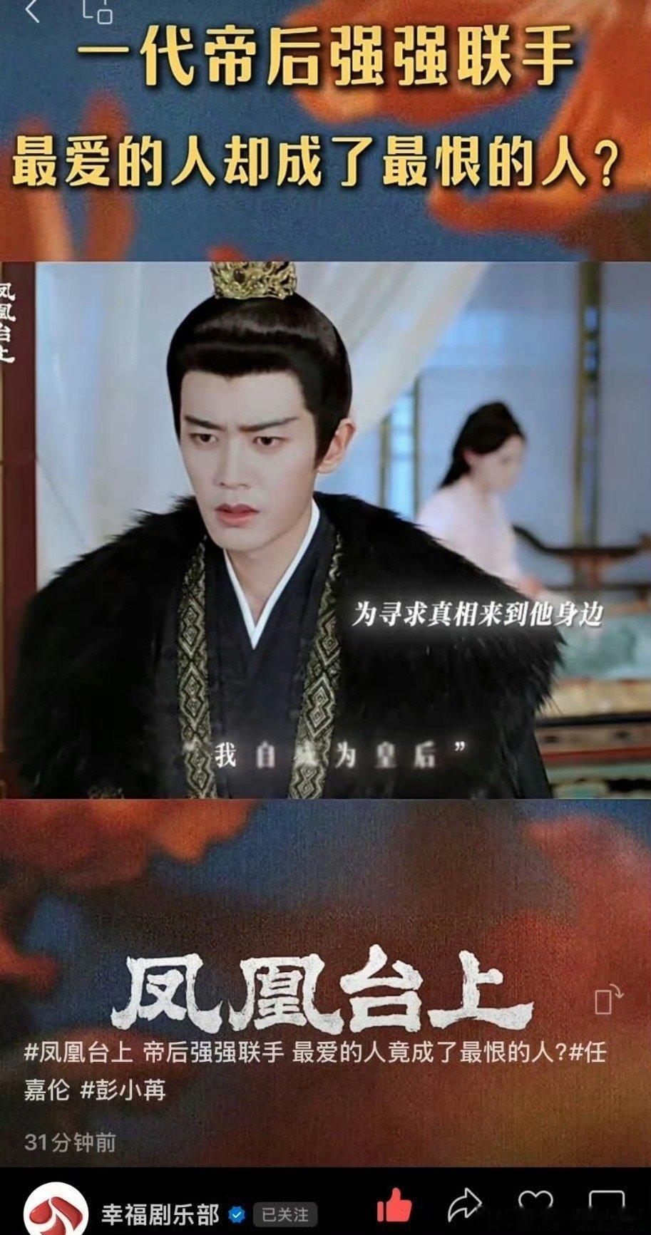 任嘉伦《凤凰台上》在江苏卫视公众号里预热啦,上星安排!