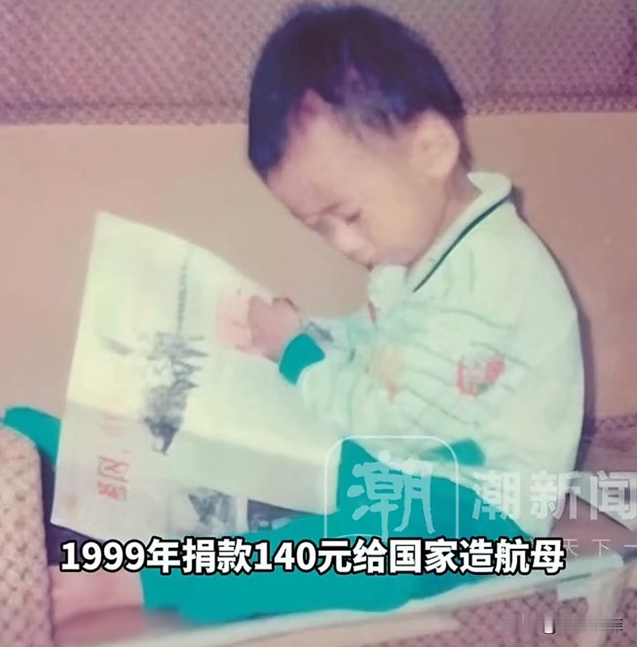1999年,广西一个小朋友分4次,给国家捐了140元用来建造航母,这在当年还真不算小数目,之后相关部门将140元退还,同时还回信表扬。 当时5岁的小男孩陈虞文,受当过兵的父亲影响从小关注军事,得知航母是国防强大的象征后,便决定把积攒的140元零花钱捐给国家造航母。 在父亲的支持下,他跑了4趟邮局,分4次把钱寄了出去。2000年初,他收到了回信。部队按规定退回捐款,还附了一张新年贺卡,感谢他支援国防的心意。 长大后的陈虞文考上法学专业,毕业后在北京工作,始终是个军迷。 他说,没想到小时候的梦想真的实现了,现在满是自豪,这份跨越20多年的初心,终于迎来了最动人的回响。 5岁孩子的爱国没有任何功利,140元是他能拿出的全部心意,这份位卑未敢忘忧国的赤诚太好哭了。 ​ 孩子用行动表达心意,如今国家强大了,他的愿望成真,也是我们一代人的心愿实现。 ​ 部队退回捐款还寄贺卡,既守了规定,又呵护了孩子的初心,这份双向的温柔很打动人。