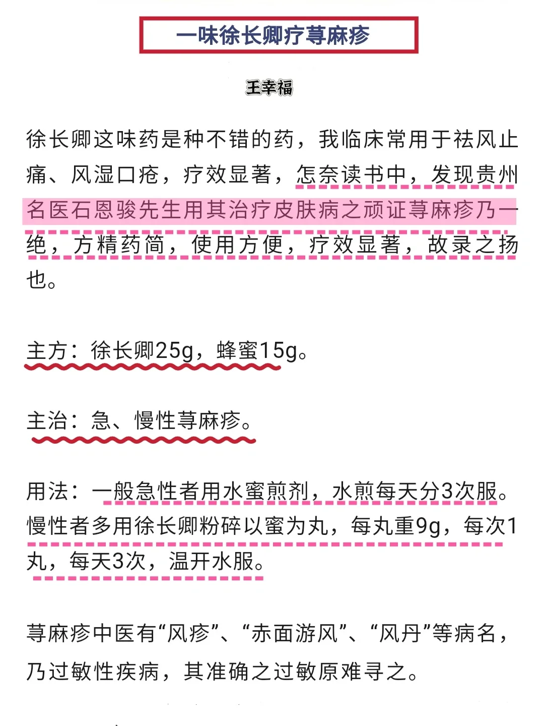 祖传的,几块钱不到的荨麻疹方(仅一味)