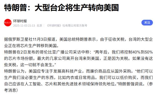 2340万台胞天塌了!特朗普一锤定音,岛内以后只生产内衣和日用品 麻烦看官老爷们右上角点击一下“关注”,既方便您进行讨论和分享,又能给您带来不一样的参与感,感谢您的支持! 先说这半导体产业,咱们都知道,台积电这种巨头掌握着高端制造能力,是全球高附加值芯片的核心供应商。 特朗普这招,一边施压让这些企业向美国投靠,一边用关税和政策封堵岛内企业外销,直接把利润和技术“搬家”。 结果呢?岛内那些工程师、技术人员、甚至普通工人都开始揪心,工资会不会被压?工作会不会被挤?投资会不会缩?整个经济链条一旦断了,高附加值产业没了,岛内经济的“脊梁”就被掰弯了。 你要说影响有多大?简单算一笔账就明白了。台湾人口不到2500万,几乎每个人都或多或少被半导体产业牵着鼻子走。 高附加值产业被削弱,消费力下降,零售、服务、餐饮全都感受到压力,连平常看起来不怎么挂钩的行业都得跟着哆嗦。 再看岛内经济应对,恐慌感明显。媒体报道出来的都是“台湾必须找到新出口市场”“台企要搬回美国或东南亚”的声音,整个舆论氛围像极了一个被大风吹得东倒西歪的玻璃球。 政策面上,岛内政府也在忙着做各种“安抚”,可惜效果有限,因为市场和资本的信心一旦被动摇,光靠政策喊话是解决不了根本问题的。 这时候,大陆的作用就显得格外鲜明。别以为大陆只会口头上喊“和平统一”或者“愿意合作”,实际操作上,大陆通过贸易便利、资金支持、合作项目,为台企提供了稳定发展的空间。 台湾企业要想继续生存和发展,在大陆市场和大陆资本的支撑下,至少可以稳住部分业务和利润。 这种鲜明对比,一边是美国用政策拳头逼迫,一边是大陆用市场和资金托盘稳住企业,台企和台胞的选择余地其实越来越小。 再回到特朗普这边,你要理解,这不仅仅是经济问题,更是一种战略布局。美国要的不是台湾独立发展,而是确保高科技产业链向自己倾斜,把利润、技术和核心控制权都握在手里。 特朗普的策略,表面看是经济打压,实际上是战略围堵,目的明确,削弱台湾自主高端产业能力,防止中国大陆和其他竞争对手在科技领域抢跑。 岛内反应呢?可以想象得出来,媒体、政客、民众集体焦虑。股市开始震荡,出口订单受挫,高科技企业的投资计划一再延后。 原本引以为傲的半导体产业链,突然感受到来自外部的压力,台企的生存空间被迫缩小。民众更直观,工资稳定吗?就业机会还有吗?生活成本会不会上升?答案似乎不太乐观。 反观大陆,这次则显得胸有成竹。大陆不仅有强大的市场需求,还有政策和资金的灵活支持,可以在一定程度上吸纳和稳定台湾企业。 简单说,就是有人给你撑着,至少不会让你一夜之间掉进悬崖。台企要继续发展,或者至少维持生存,大陆市场和合作机会几乎成了必选项。 这一对比,让台湾的选择空间越来越受限,也让岛内经济和就业压力显得更加明显。 你别小看这个“只生产内衣和日用品”的夸张说法,它其实折射出岛内高附加值产业被压缩后,剩下的产业链结构调整问题。 高科技、半导体产业受挤压,本地经济失去了支撑,低附加值、低利润的产业就会被动接盘,整体产业结构开始倒退。换句话说,岛内经济不仅被美国政策牵着走,还被迫往“低端化”方向调整。 特朗普的一锤定音,不仅让台企震惊,也让岛内民众开始思考一个现实问题:未来还能依靠什么?科技、就业、利润、市场……每一条都受到外部力量的左右。 而大陆的存在,让这个局面至少不至于完全崩塌,也让岛内经济有了另一种选择。但这个选择,显然并不轻松,必须面对来自外部的压力和内部的调整。 从这个角度看,“天塌了”不是夸张,而是对岛内经济脆弱性的真实写照。特朗普的动作,让台湾高附加值产业遭受冲击,岛内就业压力上升,同时也暴露出过度依赖外部市场和技术的风险。 而大陆市场的稳定作用,则提供了一条缓冲路径,让岛内企业至少能有喘息的机会,也让台胞在面对不确定性时,有了一丝安全感。 最后,这件事告诉我们一个很现实的道理,全球产业链和政策博弈下,没有任何经济体是孤岛,强权和策略能直接改变就业和利润流向。 台湾这次感受最深的,就是高附加值产业一旦受制于外部力量,普通民众的生活会立刻受到冲击。 而大陆的市场和资金支持,则成为了一种现实缓冲,让岛内经济不至于完全失控,也让台胞在夹缝中找到生存和发展的机会。 信息来源:环球时报《特朗普:大型台企将生产转向美国》