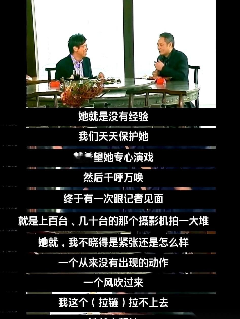 那一瞬间,李安导演绝对两眼一黑。 几十台相机咔嚓咔嚓对着,一个年轻女演员,正笨手笨脚地要给他拉外套拉链。 他那声“不要!”,喊得撕心裂肺,可哪儿来得及啊。 更要命的是,这姑娘也是个实心眼,一个拉链,愣是拉了三分钟没拉上。 这下好了,素材全了。 第二天,媒体那帮人,鼻子比狗都灵。标题怎么暧昧怎么来,恨不得给你写成一部带颜色的小说。 但这都不算最诛心的。 最诛心的是,李安的太太,是被同事拿着报纸提醒去看的。他的儿子,是被学校老师叫过去看照片的。 你琢磨琢磨这滋味。 一个国际大导演,就因为一个晚辈笨拙的示好,家里人都要跟着受这种委屈。 其实那姑娘能有什么坏心思呢? 俩人差着25岁,在她眼里,李安就是个值得尊敬的长辈。天冷了,想帮长辈拉个拉链,跟咱们给自己爹掖掖衣角,心态上没啥区别。 就是……场合不对,方式太蠢。纯属好心办了件天大的坏事。 所以说,这件事里,我最佩服的,还是李安的太太。 外面风言风语,全世界都等着看她家笑话,但她波澜不惊。 真正的定海神针,不是你喊一句“清者自清”就完了。 而是你家里那个人,她压根就没觉得这是个事儿,她从心底里信你。