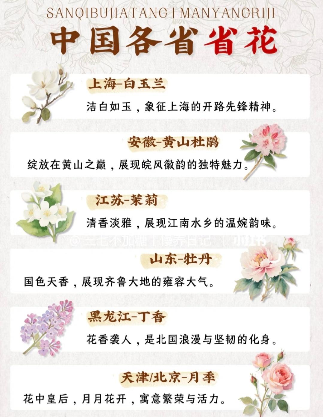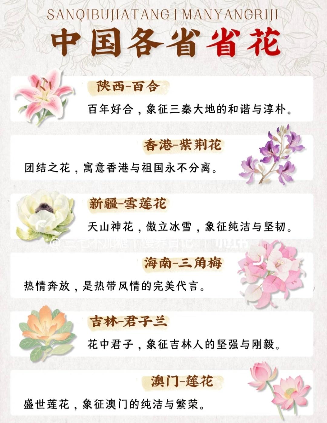 看了才知道,中国各省的省花...