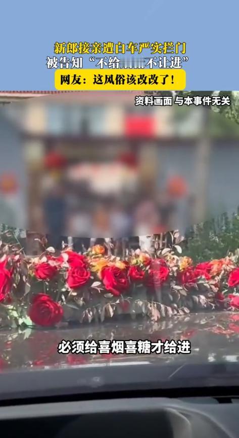 真是活久见!江苏宿迁一场婚礼上,新郎带着浩浩荡荡的接亲队伍,满心欢喜地奔向新娘家,结果还没摸到大门边,就被一辆霸道的白色越野车给死死堵住了。车子横在门口,不偏不倚,连个苍蝇都飞不进去。旁边还有人扯着嗓子喊:“不给够烟和糖,今天这门就别想进!” 据百姓315 11月10日报道,这阵仗,不知道的还以为是哪家在搞什么强制收费呢,本来结婚是天大的喜事,谁都想图个吉利,要个热闹。 可这车一横,味儿全变了,新郎那张笑脸,估计当场就僵硬了不少,接亲的车队排在后面,大家伙儿都伸长了脖子看,这婚还结不结了? 现场乱哄哄的,有人拿着手机拍视频,嘴里还笑着说:“这下新郎可进不来了,看他怎么办。” 那语气,听着不像是开玩笑,倒像是等着看好戏,后来,拍视频的人解释说,这是他们当地的风俗,叫“拦门”,目的就是为了讨要喜烟和喜糖,不给?那就耗着呗。 这话一出,网上可就炸了锅,有网友直接就说:“我要是这新郎,二话不说,方向盘一打直接回家,这婚不结也罢!这不是明摆着欺负人吗?” 这话虽然冲动,但说出了很多人的心声,结婚是两个家庭的结合,是件开心的事,怎么到了门口,反而像是在过关打劫? 咱们琢'磨一下,这所谓的“风俗”到底是怎么回事,拦门讨喜,图个热闹,这个初衷没错,以前邻里乡亲关系好,借着这个由头,大家一起乐呵乐呵,新郎官说几句好话,撒一把糖,气氛就起来了。 可现在呢?一辆越野车直接把门堵死,这就不是“讨”了,这是“要”,甚至带着点威胁的味道,把车开出来当路障,这已经超出了玩笑的范畴,更像是一种下马威,这到底是给新人增添喜气,还是给他们添堵呢? 这件事最让人觉得不舒服的地方,是它把原本善意的互动,变成了一种带有强制性的索取,给烟给糖,本来是新人分享喜悦的一种方式,你情我愿,可现在变成了“不给就别想进门”的交易。 很多网友都评论说:“这哪是风俗,这分明就是借着风俗的名义耍无赖!” “结婚图的是顺利和开心,搞这么一出,以后两家人心里能没点想法吗?” 其实,真正好的婚俗,是能让所有参与者都感到快乐和尊重的,比如让新郎做几个俯卧撑,唱首情歌,或者回答几个关于新娘的问题,这些小游戏既能活跃气氛,又能考验新郎的诚意,大家笑一笑就过去了。 这才是真正地为婚礼增添色彩,而像这种用物质、用车辆来设置障碍的方式,已经完全脱离了“热闹”的本质,变成了赤裸裸的为难。 说到底,时代在进步,人们的思想观念也在变化,一些过去的老规矩,如果已经不适应现在的社会氛围,甚至会引起大家的反感,那就应该改一改,或者干脆摒弃掉。 婚礼是神圣的,是两个人爱情的见证,不应该成为任何人满足私欲、展示“地方特色”的舞台,如果所谓的“风俗”让喜事变成了闹剧,让祝福变成了负担,那它就没有存在的必要了。 希望这对新人没有因为这个插曲影响到心情,也希望大家都能明白,真正的热闹,是发自内心的祝福和欢笑,而不是靠堵门、索要财物来制造的尴尬场面。 结婚嘛,最重要的就是开心和顺利,别让这些所谓的“老规矩”给喜事添堵,大家觉得这种“拦门”方式能接受吗? 信源:百姓315 2025-11-10——新郎接亲遭白车严实拦门被告知“不给烟糖不让进”网友:这风俗该改改了