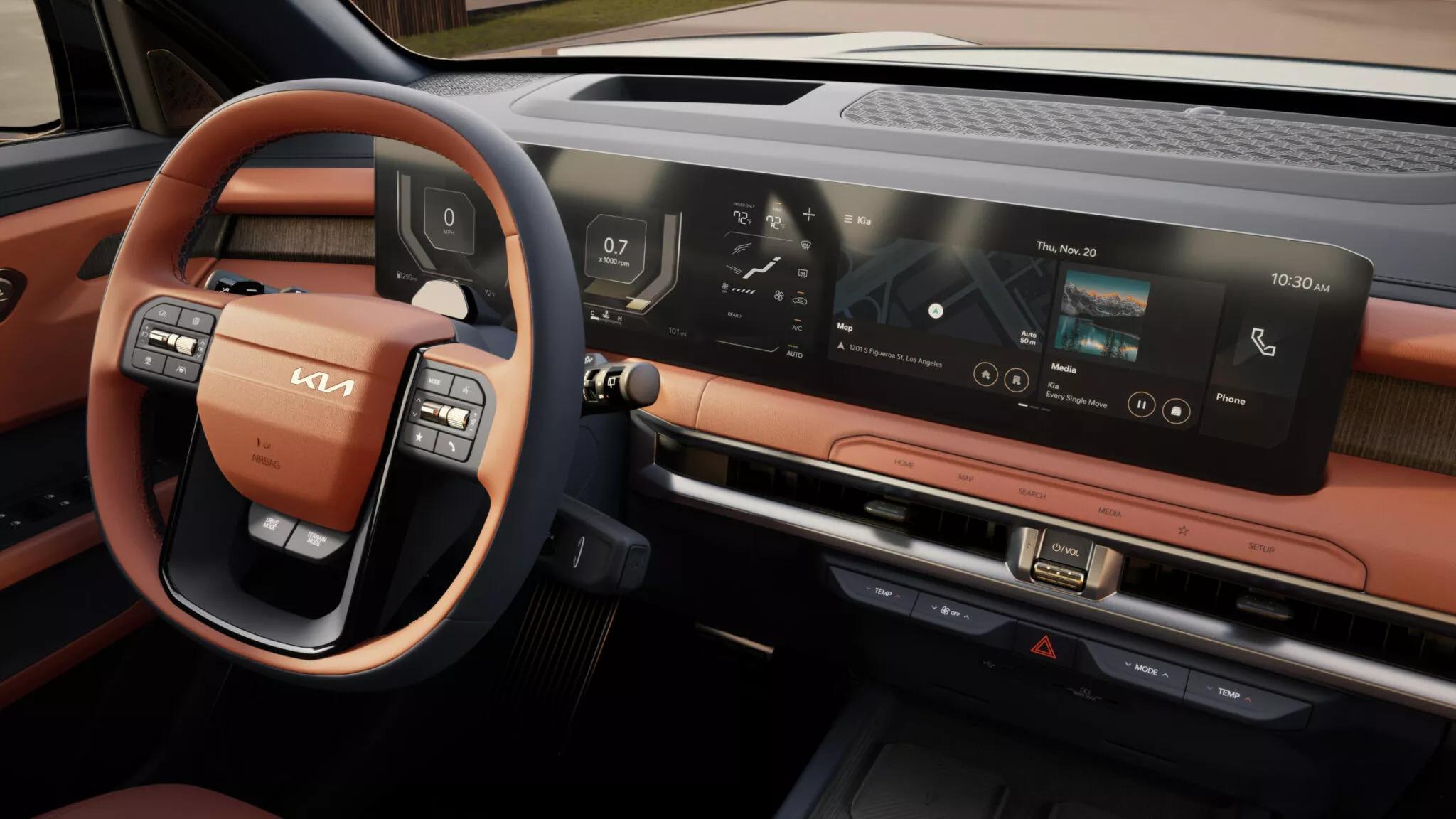 · 内饰大量参考起亚 EV9 的设计语言,配备双 12.3 英寸联屏,搭配更具现代感的三辐 / 四辐方向盘;