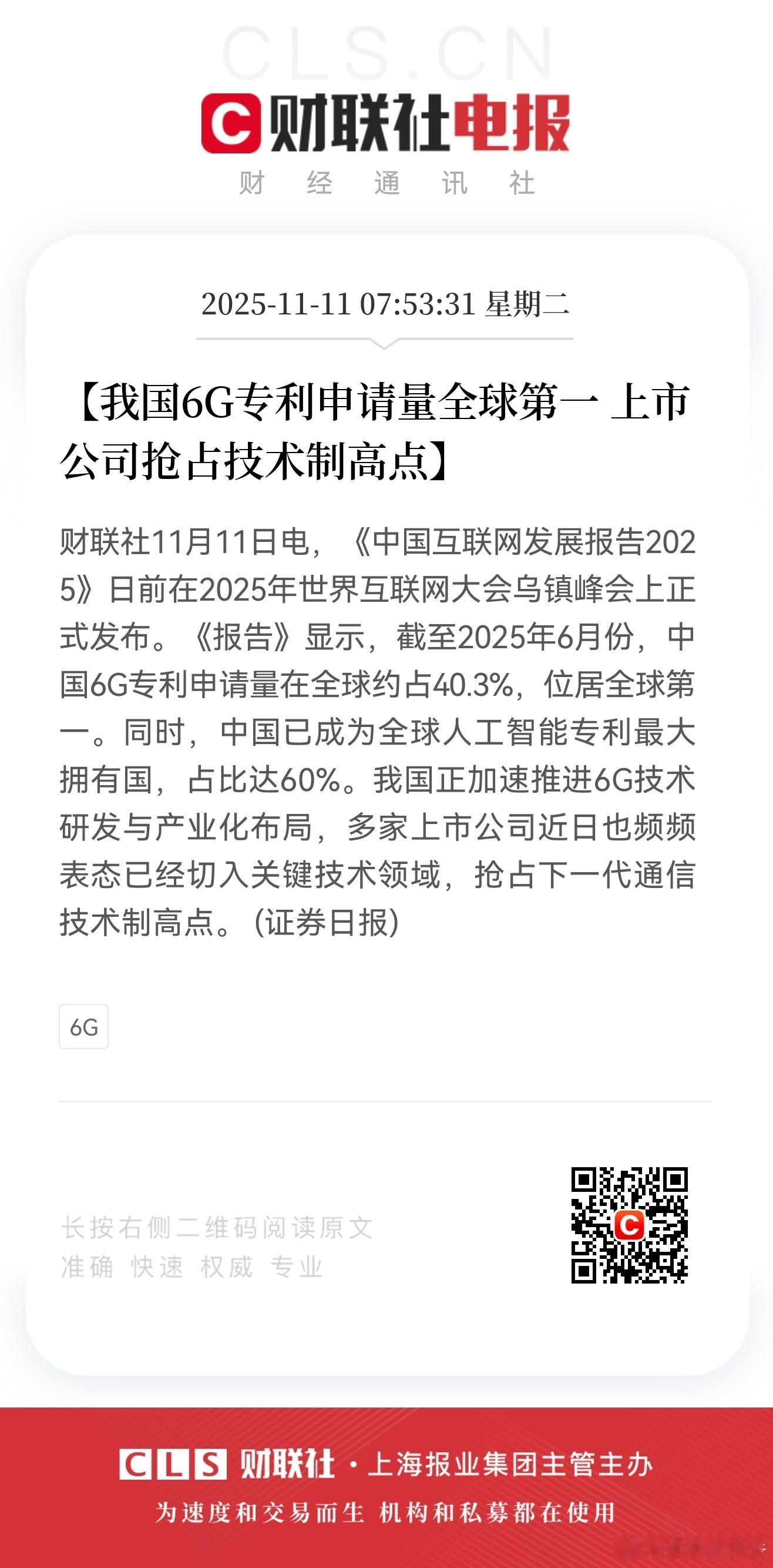 中国6G专利申请量在全球约占40.3%,位居全球第一!