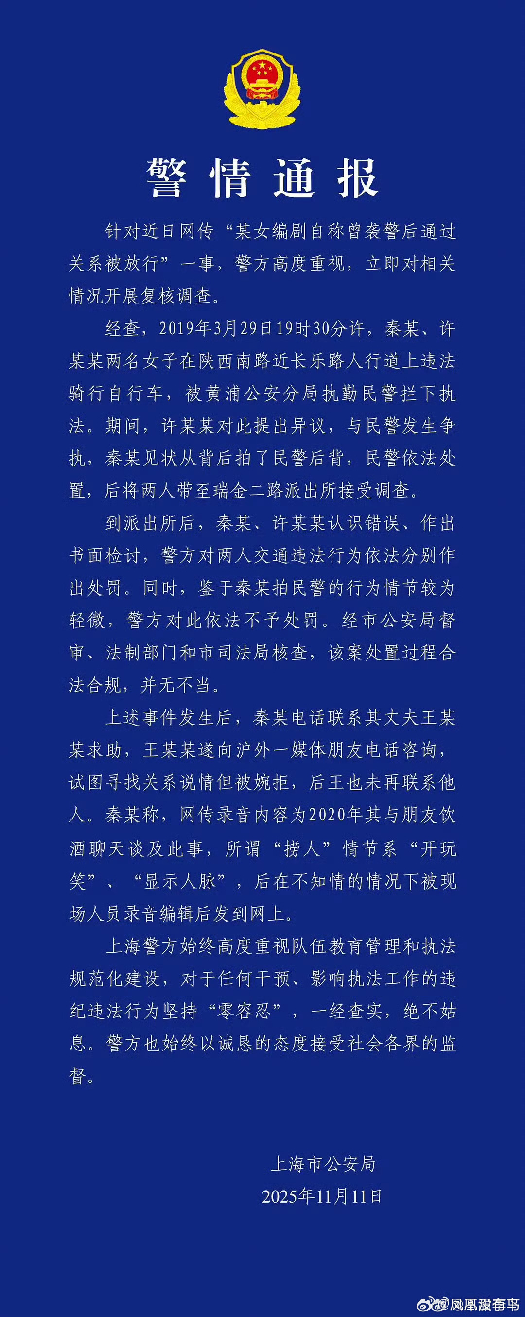 秦雯被蓝底白字通报