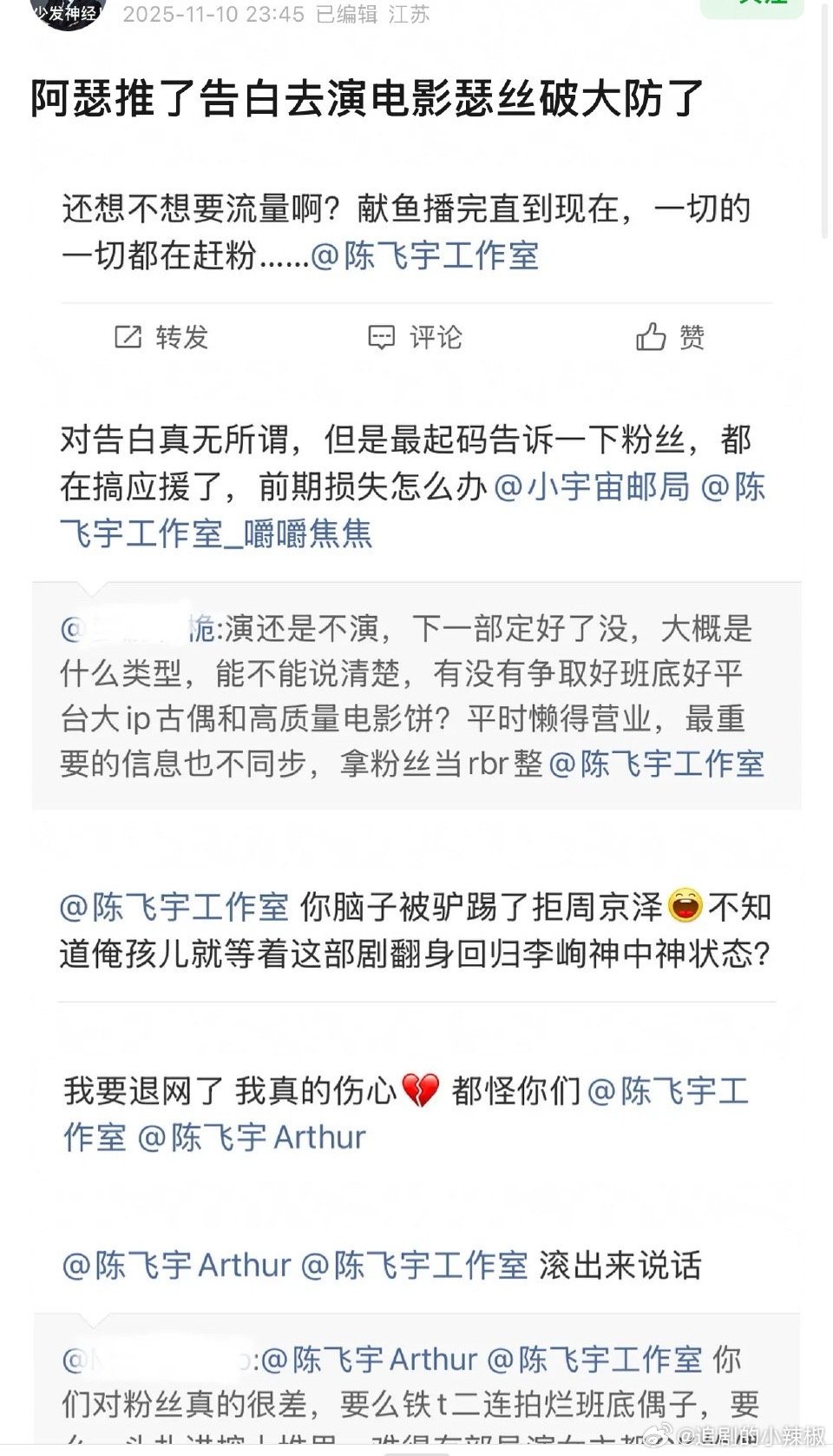 啊[傻眼]粉丝希望阿瑟演现偶ip《告白》,还是想要走流量的