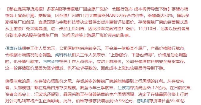 很明显存储芯片半导体拉升,指数尾盘走高,指数与科技股共振,科技股核心存储芯片涨价。
