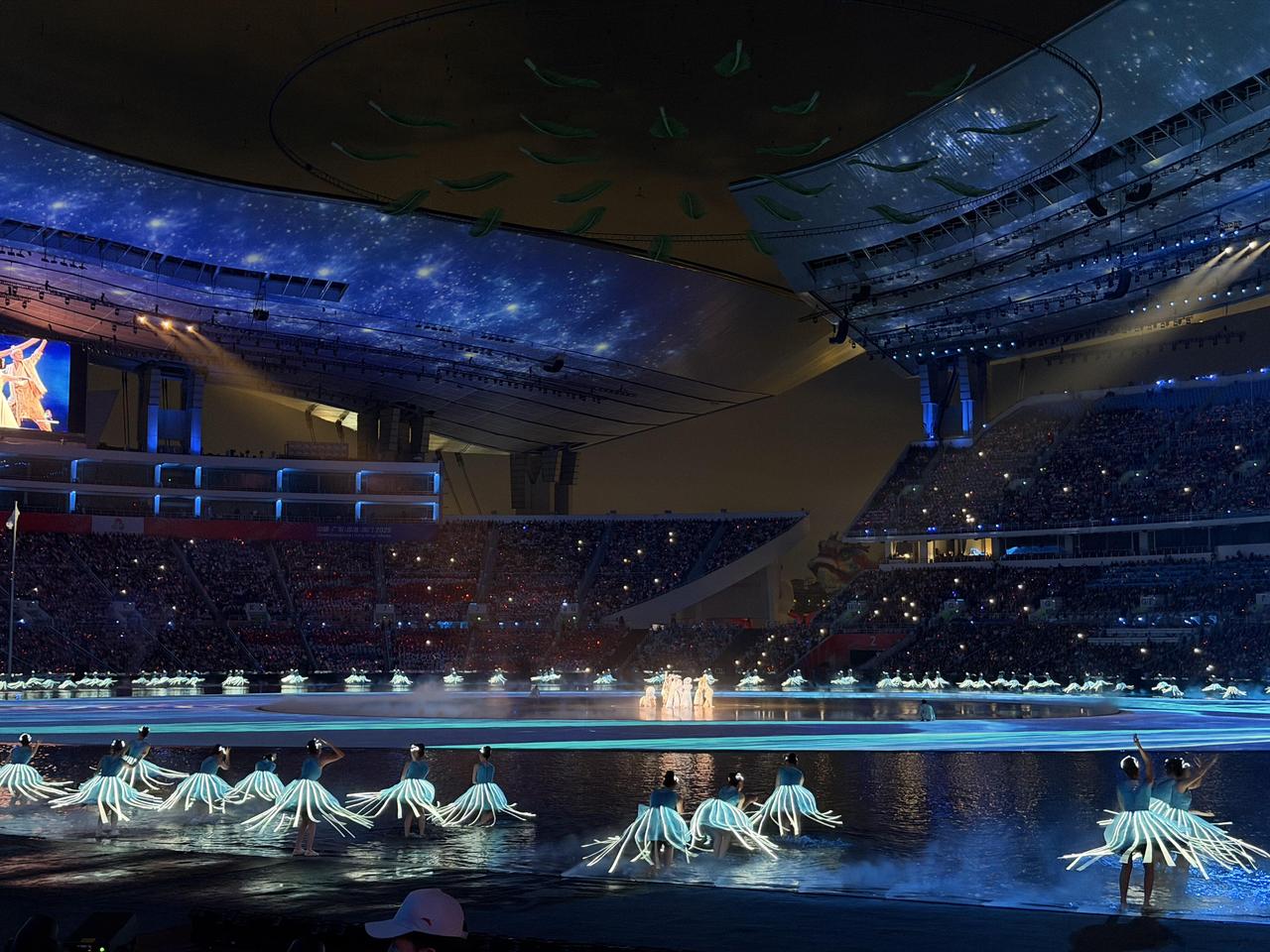 这次全运会开幕式,我看好多人都纳闷为啥总跟“水”过不去,演员泡水里,表演也离不开水。其实琢磨一下,这里头还真有点意思。 首先说这水吧,它养人啊!咱们粤港澳本来就是依水而建、同饮一江水,用这个主题特别贴切。再说远点的台湾,那也是隔海相望的一家人——这不正应了“同根同源”那句话嘛。你看最后那首歌,唱的就是这个理儿。 再说咱们广东,典型的岭南水乡,开幕式上那些武术、舞蹈、粤剧,配上水景,刚柔并济那味儿就出来了。这波文化输出,到位! 还有个细节不知道你们注意到没——火炬手这一路跑来,跋山涉水的,多像咱们国家这些年的发展历程啊。虽然路上磕磕绊绊,但一步一个台阶往上走,这不就是拼搏精神嘛! 这次吉祥物是中华白海豚,烟花开的是电子版,主火炬直接用水雾和光来代替真火……这一套操作下来,环保和科技感都拉满了。 说真的,看着演员们泡在水里表演,确实挺不容易的。感谢所有工作人员和志愿者这几个月的付出,也祝运动员们都能赛出好成绩!