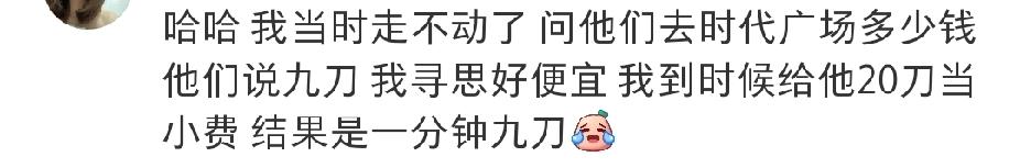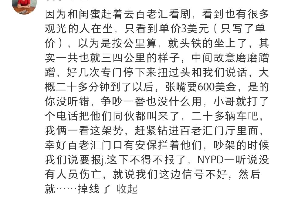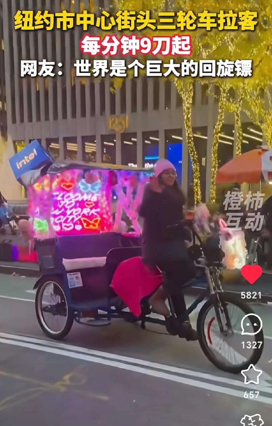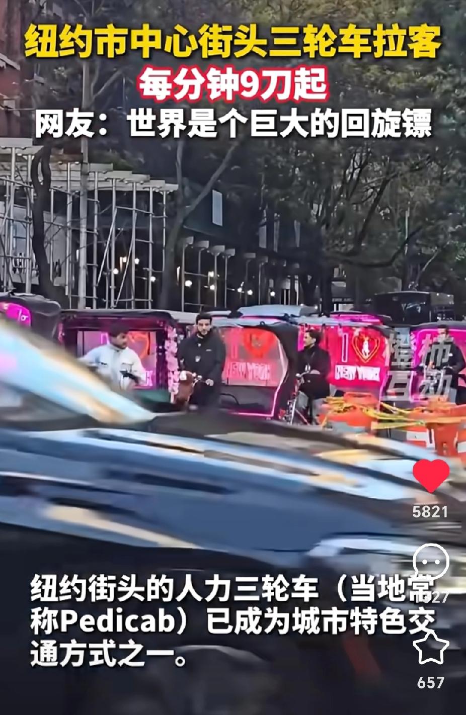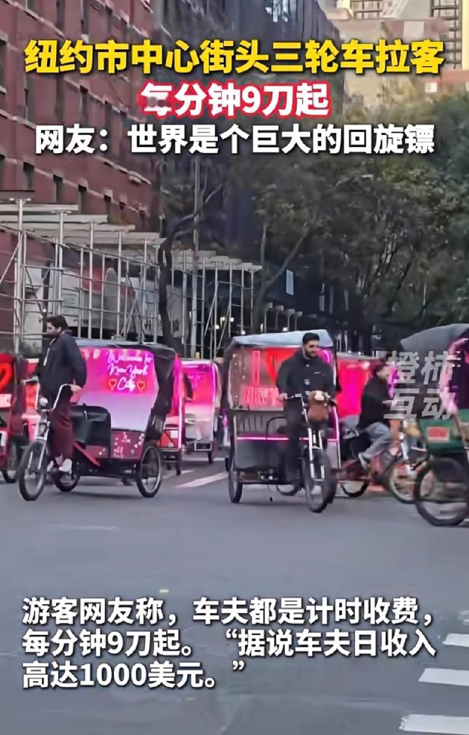 美国纽约满大街都是人力车夫,笑不活了!世界是一个巨大的回旋镖,30年河东,三十年河西。 美国政府停摆,好多老百姓连食物券都没得领,现在出现了大量的人力车夫。每分钟就9刀起,我的天!中国新闻这个视频一发出,很多网友不相信,以为是胡说八道的。 不过有住在纽约的华人表示这是真的。一位美国华人女子说,因为跟闺蜜去百老汇看剧,看到很多人坐这种观光车,只看到上面儿写的单价3美元。她以为单价是按公里算的,以为跟国内一样,所以就坐上去了。 可是一共就坐了三四公里的样子,中间车夫还磨磨蹭蹭的。好几次停下来,还回头跟她们说话,所以磨磨蹭蹭跑了20多分钟,没想到张嘴就要600美金。这不是讹钱吗?她们不愿意给,跟车夫争吵了一番,结果这个车夫打电话把他的伙计都叫来了。 20多辆车夫围着她们看这架势不给钱是走不了了。她们俩一看这架势,赶紧钻进百老汇的门厅里,幸亏有保安拦住了这些车夫。华人女子说要报警,最后怎么解决的她没有说。 还有一个华人女的说,她们去时代广场问多少钱,车夫说9美金,她以为好便宜,想着到时候再给20美金当小费,结果结账的时候发现是一分钟9刀,原来是按分钟算钱的,怪不得车夫磨磨蹭蹭慢慢吞吞的。 这简直是抢钱呀!我们那个时候人力车是相当便宜的。美国就是美国,连人力车夫都这么值钱。