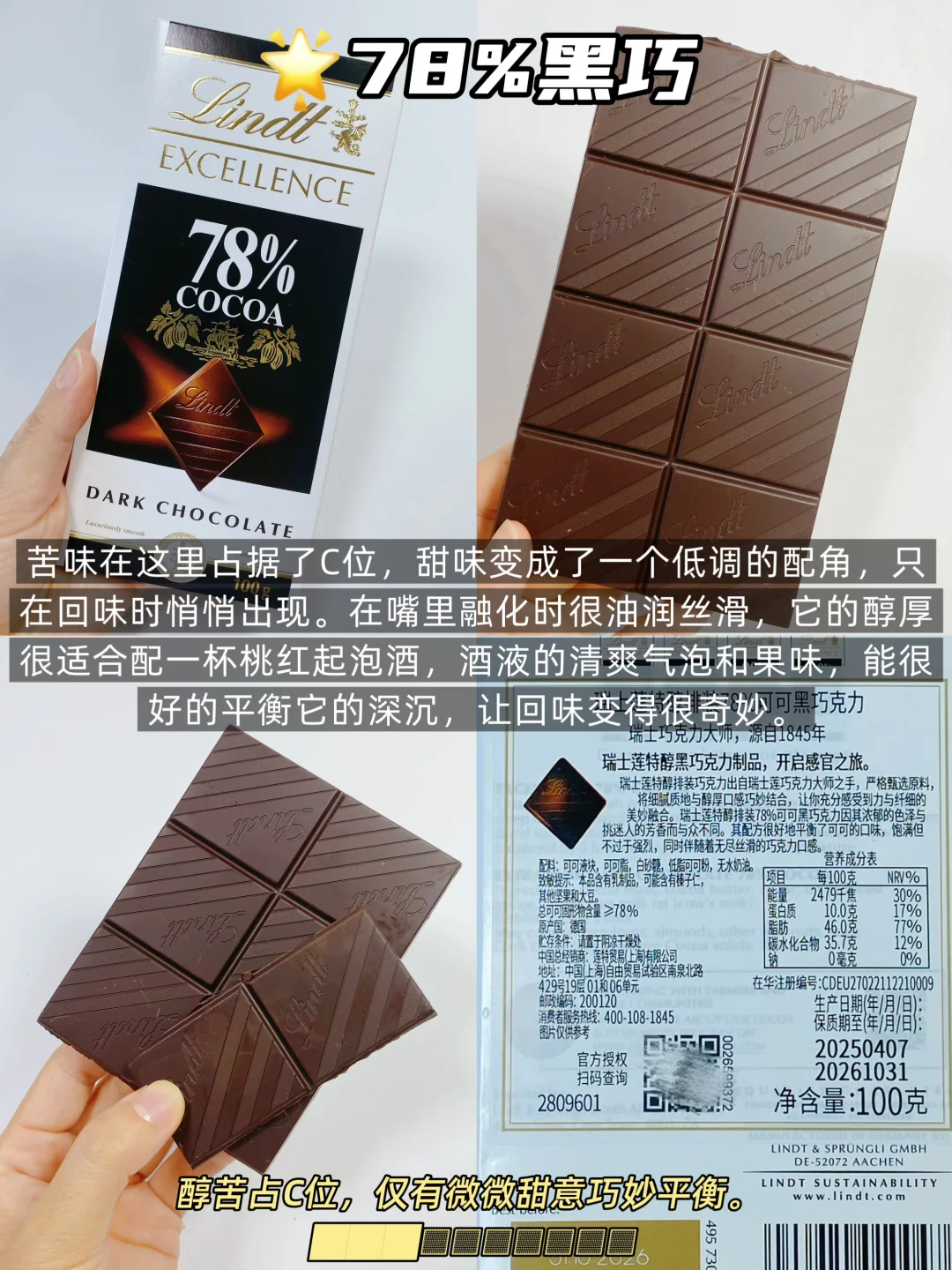 ▪️ 78%:70%的进阶版,甜味大减,可可的本味醇香更突出了。