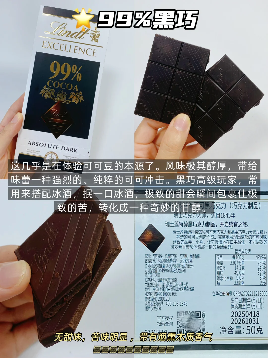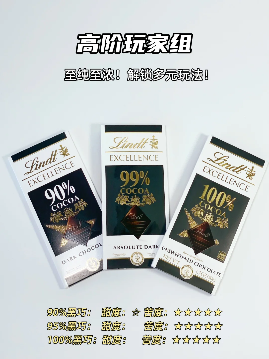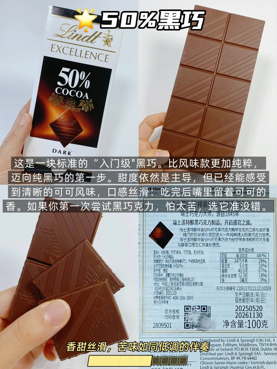▪️ 50%:最不苦的黑巧,牛奶巧克力爱好者转型第一步,从这里开始没错!