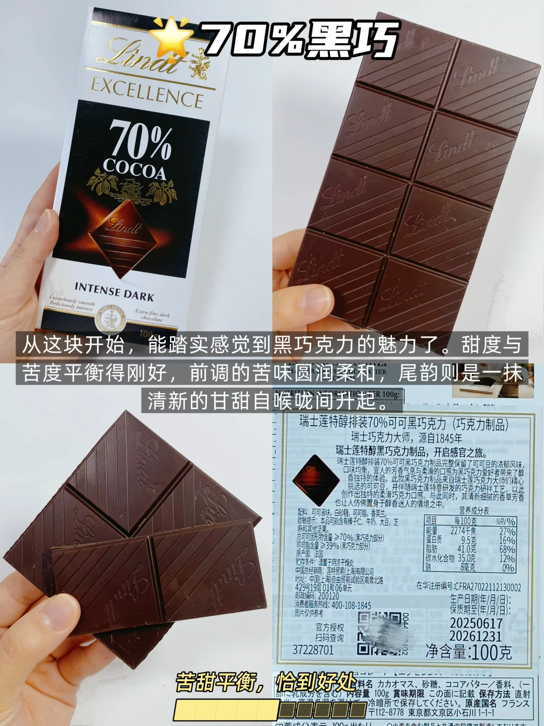 ▪️ 70%:苦甜黄金比例! 这才是大多数人心目中“黑巧该有的样子”,香醇又顺口。不知道买哪个?闭眼入它!