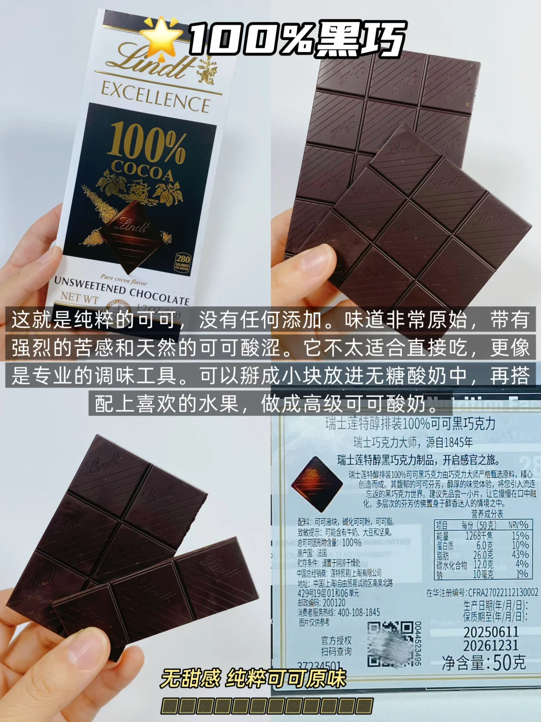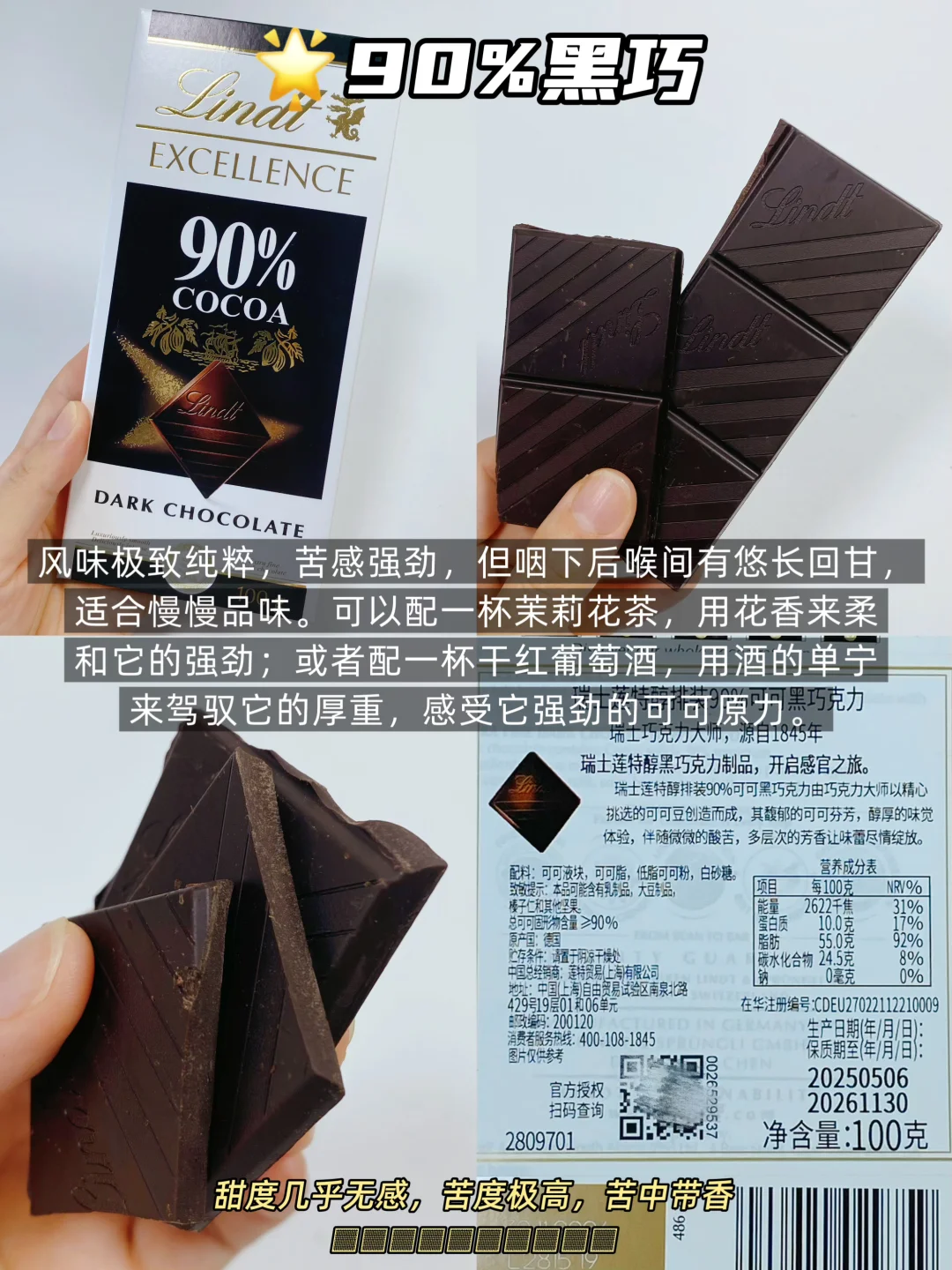🌟黑巧的百分比,指的是【可可含量】。数字越大越苦!越不甜! 它只关乎口味,不代表品质!