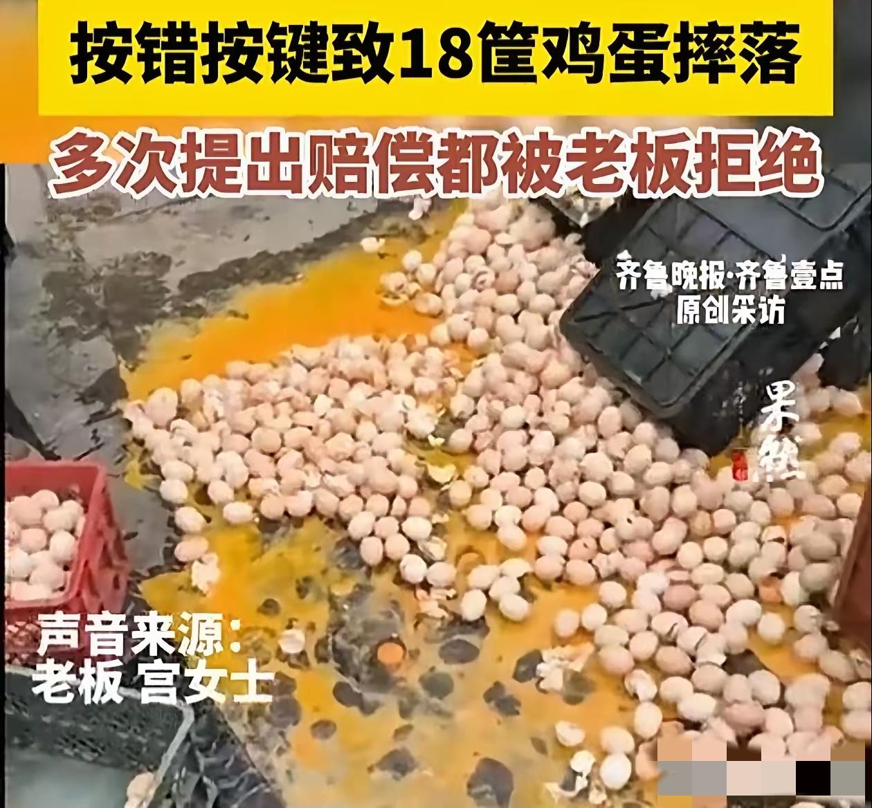 山东威海女老板这波操作,直接给所有老板上了堂格局课!新员工第一天上班,误触遥控器把18箱鸡蛋全倒在地上,蛋液流了一地,损失近1800块! 小伙子当时就慌了,以为工作要没还得赔钱,主动提了两次赔偿,结果老板娘一口拒绝,还说“大家都不容易,这点损失我们扛得住”。 换别的老板可能早翻脸了,但这位老板娘偏偏选择包容。其实老板的格局,从来不是计较一时得失,而是懂得体谅员工的无心之失。 员工犯错时的态度,藏着企业的温度。这样的老板,换谁不想死心塌地跟着干?比起苛责,包容才是最能凝聚人心的管理方式。 你遇到过这么通情达理的老板吗?如果是你,会原谅新手员工的无心之失吗?