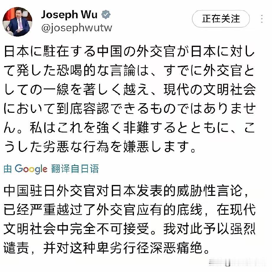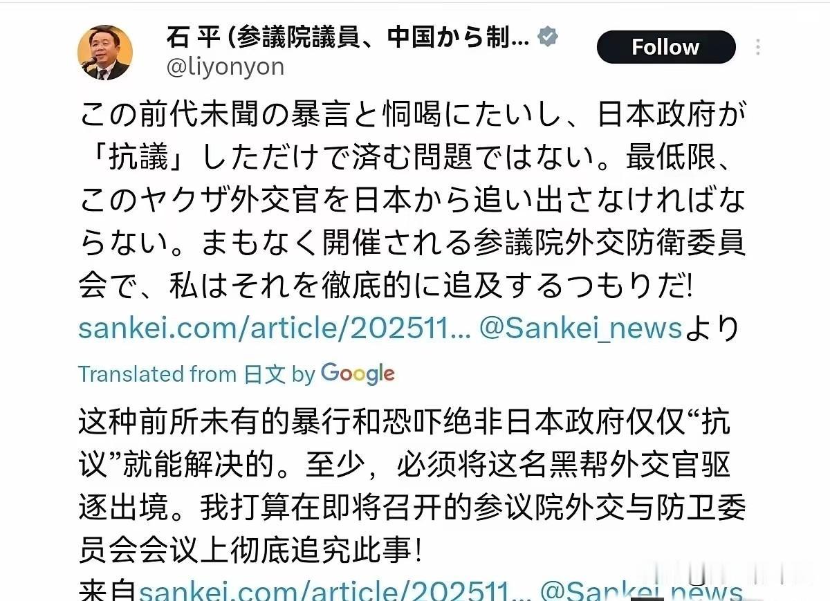 日本大使:侮辱日本等同于宣战日本驻澳大利亚大使山上信吾11月10日发文:“侮