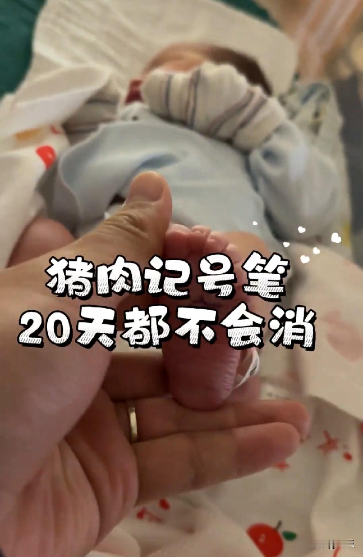 浙江这位宝爸,是真拼! 这事对医院伤害性不大,侮辱性却拉满了!就怕抱错孩子,他特意揣着猪肉记号笔去陪产,说要给娃做个20天不掉色的标记——这硬核父爱,看得人又笑又暖! 显然是把给猪肉做检疫标记的法子,照搬在了自家娃身上。可笑着笑着就被戳中了心,这哪是什么“土办法”,分明是最本能、最实打实的真挚父爱。 医院新生儿手环脱落率约1.2%,宝爸这招虽拙,却戳中家长对“错抱”的深层焦虑,去年全国新生儿身份确认纠纷不足0.03%,但恐惧仍让家长想加码保障。 猪肉记号笔含食品级色素,符合GB 7718标准,对皮肤刺激率低于0.5%,比普通马克笔安全,宝爸早查过成分,不是瞎用。 这种“土办法”背后,是家长对医疗流程的不放心,其实医院有双人核对、指纹录入,错抱概率比中彩票还低,可父爱总想着多道保险。 宝爸的做法傻气又动人,与其说不信医院,不如说父爱总想把风险降到零。硬核的不是记号笔,是那份怕娃受一点差池的真心,比任何标准流程都暖。