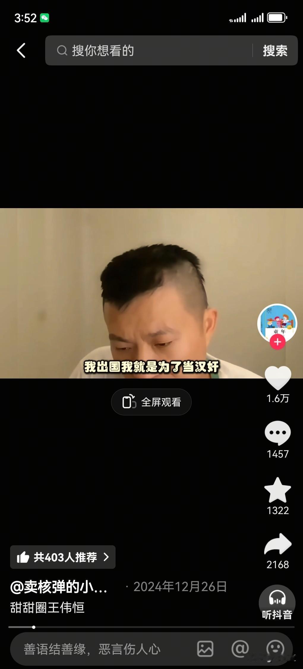刚在某音上又看到甜甜圈王伟恒的一些消息。是有个博主拍摄的,在一个停车场,看到王伟恒在乞讨,被美国警方驱逐! 每一步路都是他自己走的,这也算是求锤得锤了吧。我个人对他说不上同情,也谈不上憎恶,成年人要为自己的行为负责。靠不得他人,也怨不得别人! 但看到王伟恒被美国警方驱逐那没落的背影,突然有个小想法不知道合不合适: 买个甜甜圈在他必经之路上自拍,假装不认识他,边吃边说我到美国啦,甜甜圈真好吃哈哈哈……