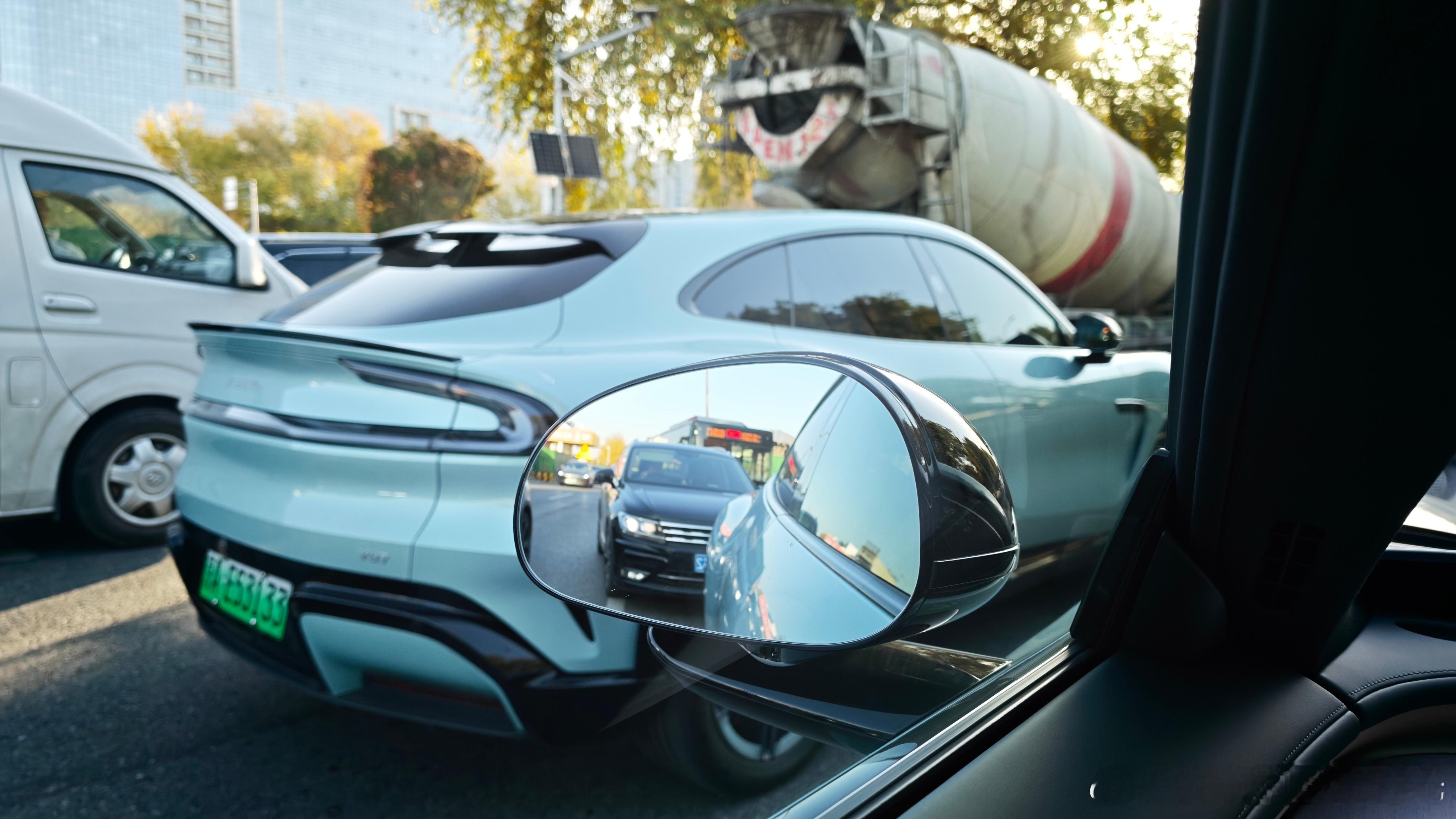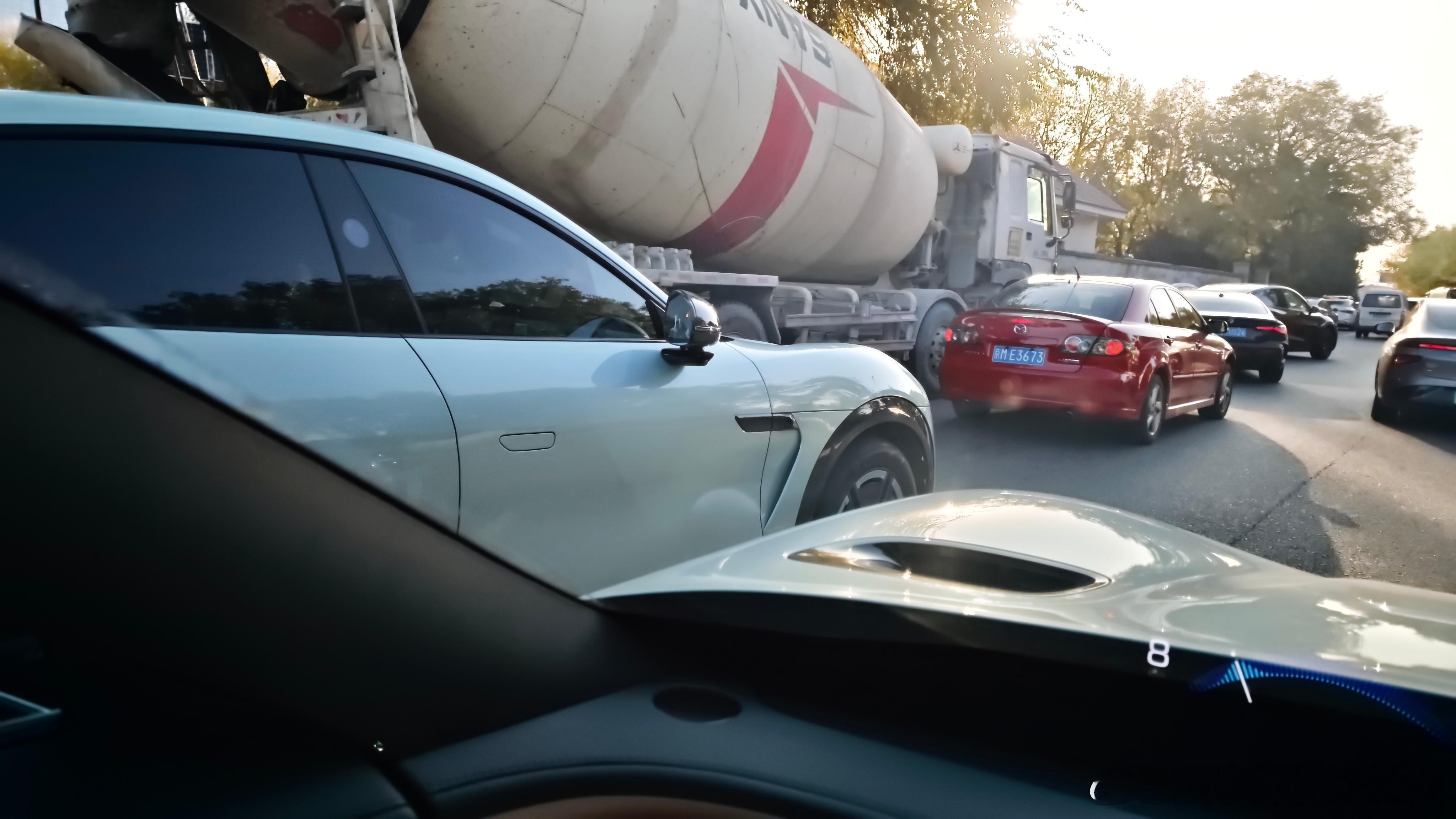 我不是开着呢吗?怎么看见外观了?这是我当时第一感觉。影青色小米YU7真的是第一次近距离遇到,这感觉太奇妙了。